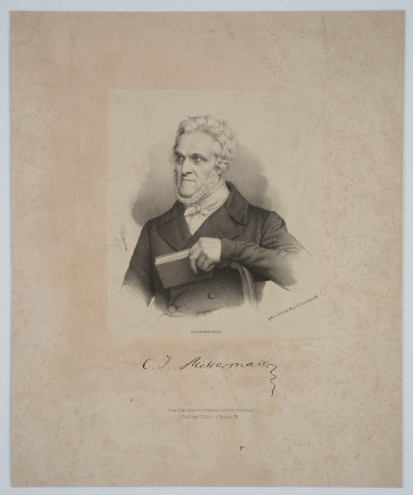 - Bezeichnung: Links neben dem Dargestellten signiert mit “F. Hickmann”. Unten auf dem Blattträger die faksimilierte Unterschirft des Dargestellten: “C. J. H[?]üttermaier”.