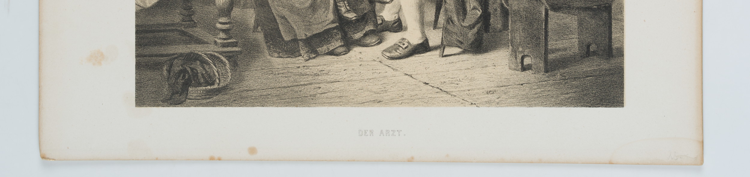 - Inscription: At the center inscribed in the printing plate: “F. Hiddemann in Düsseldorf | Der Arzt.”.