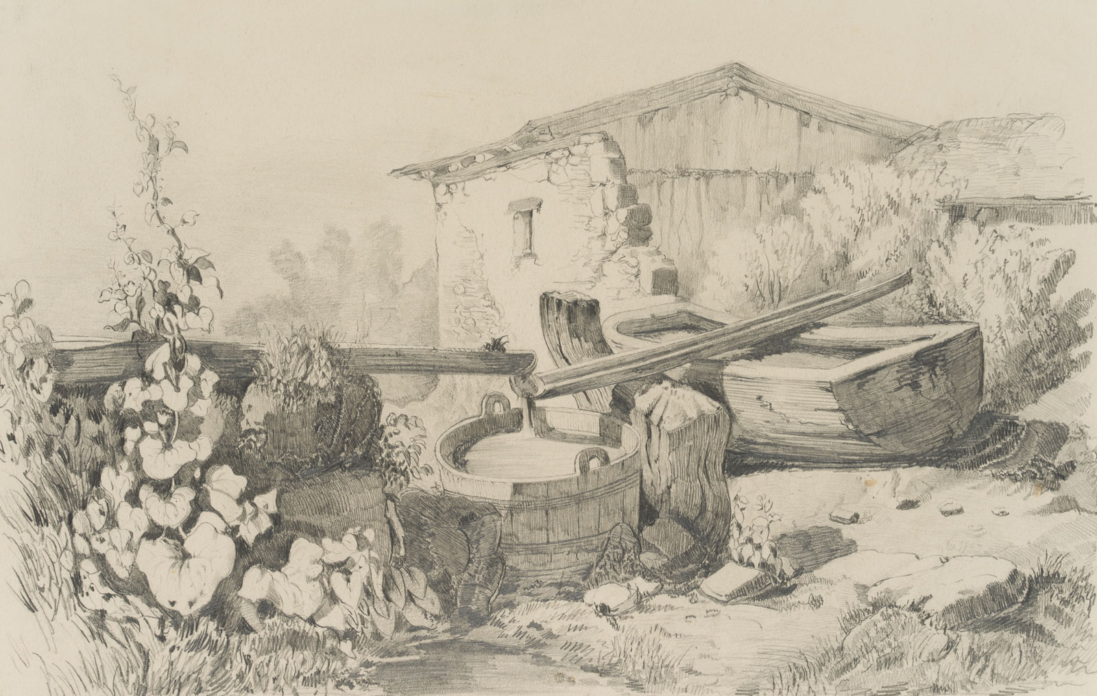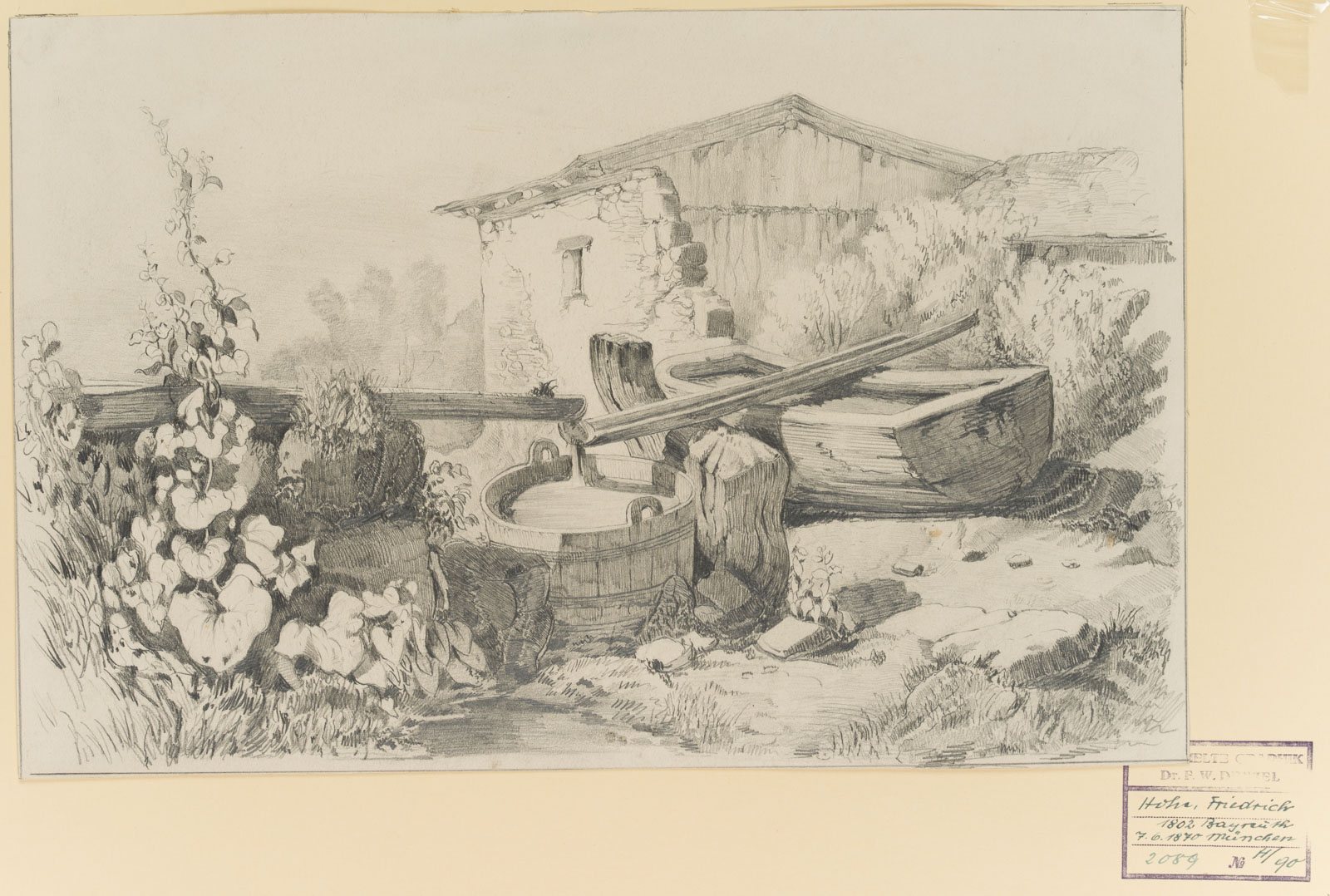 Friedrich Hohe (1802 Bayreuth – 1870 Munich), The cattle trough, 19th century, Pencil