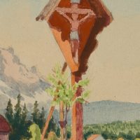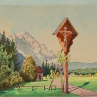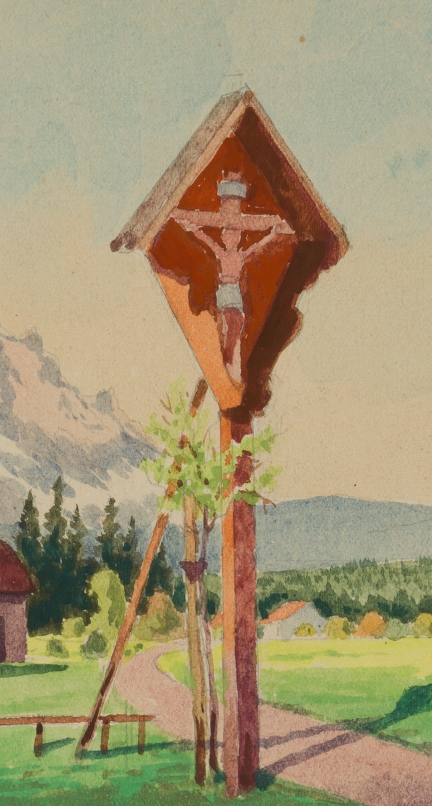 Friedrich Hollfelder (20. Jahrhundert), Flurkreuz in Molin bei Garmisch, um 1940, Aquarell