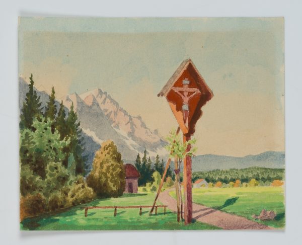 Friedrich Hollfelder (20th century), Cross in Molin near Garmisch, c. 1940, Watercolor