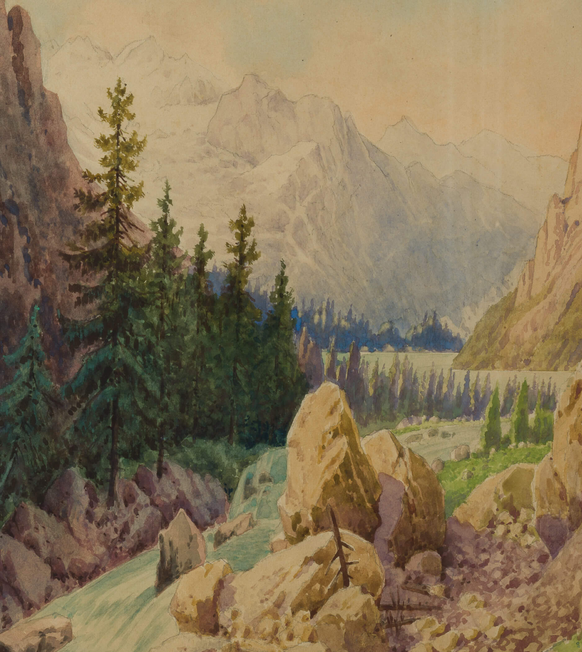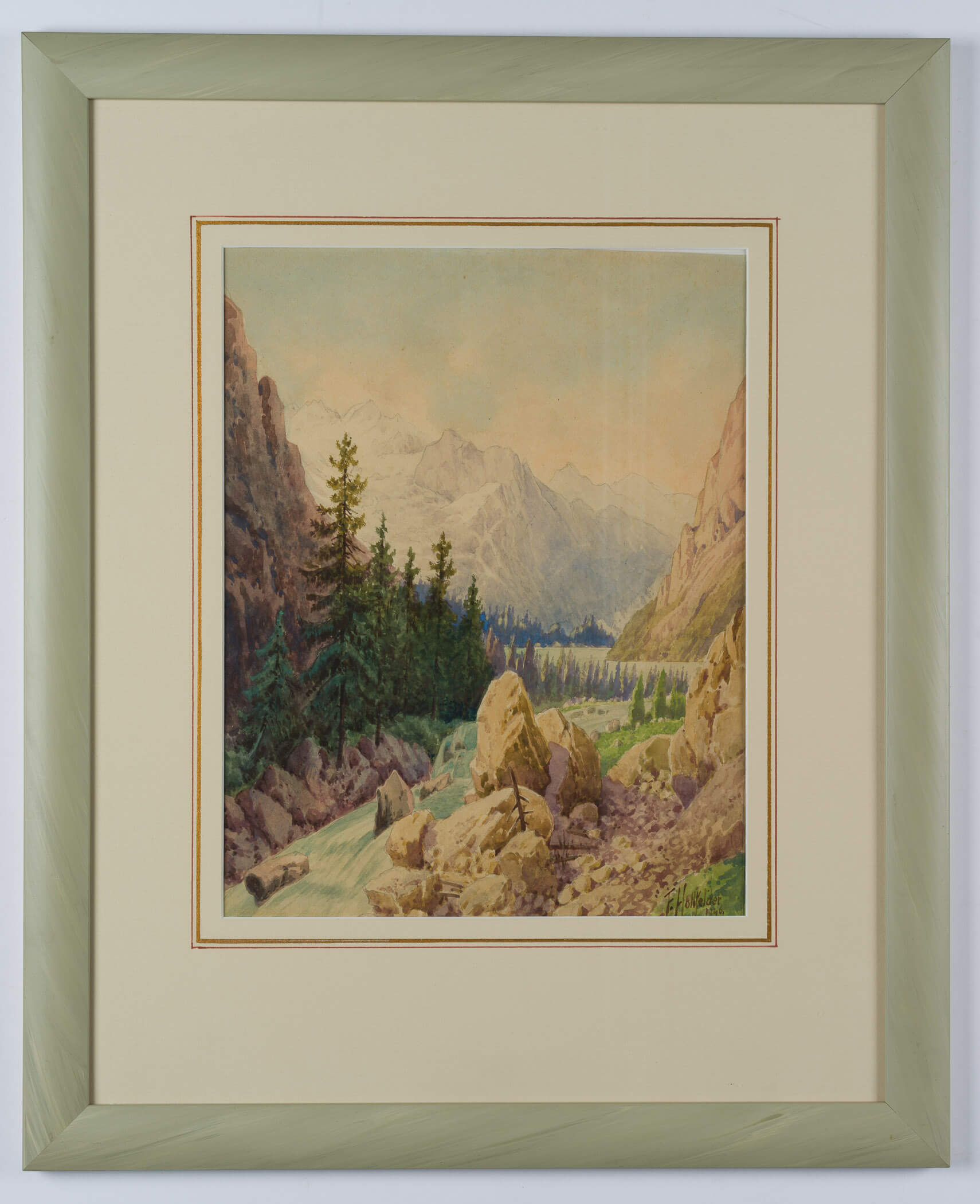 Friedrich Hollfelder (20. Jahrhundert), Gebirgslandschaft, 1946, Aquarell