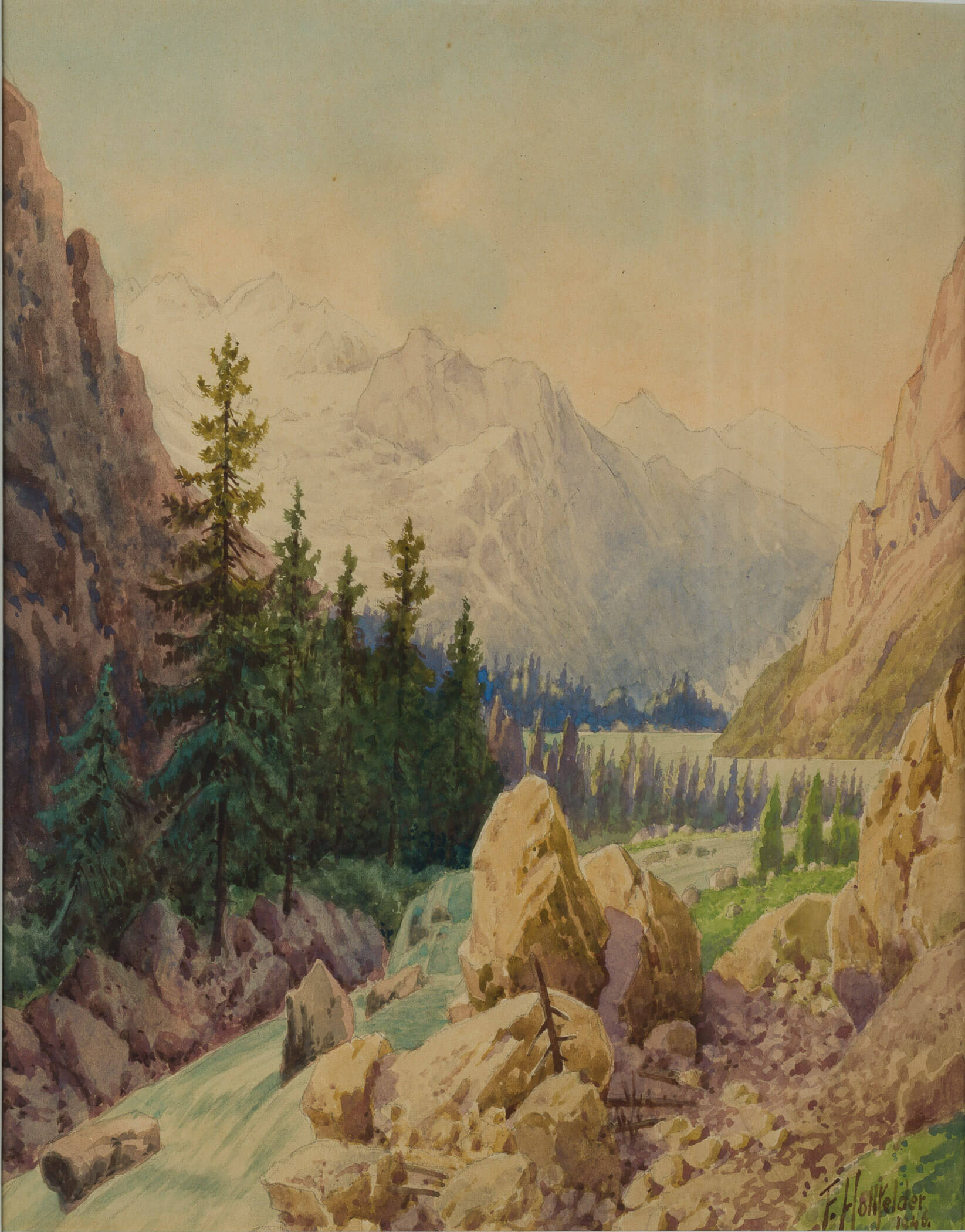 - Bezeichnung: Unten rechts signiert: “F. Hollfelder”. Unten rechts datiert.