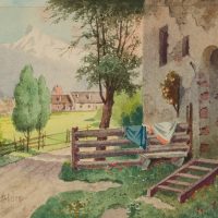 Friedrich Hollfelder (20th century), House entrance in Kaltenbrunn, c. 1940, Watercolor