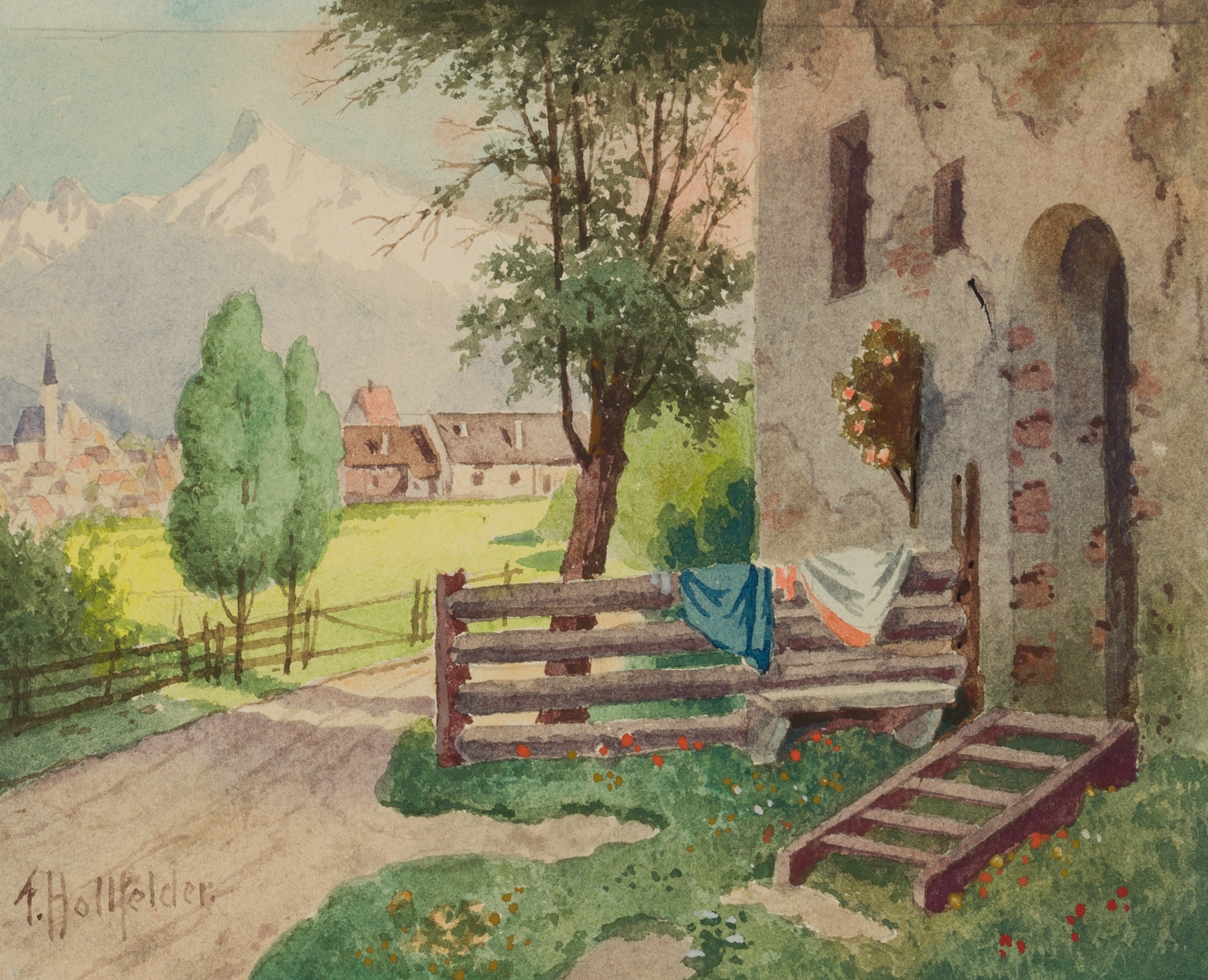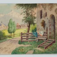 Friedrich Hollfelder (20. Jahrhundert), Hauseingang in Kaltenbrunn, um 1940, Aquarell
