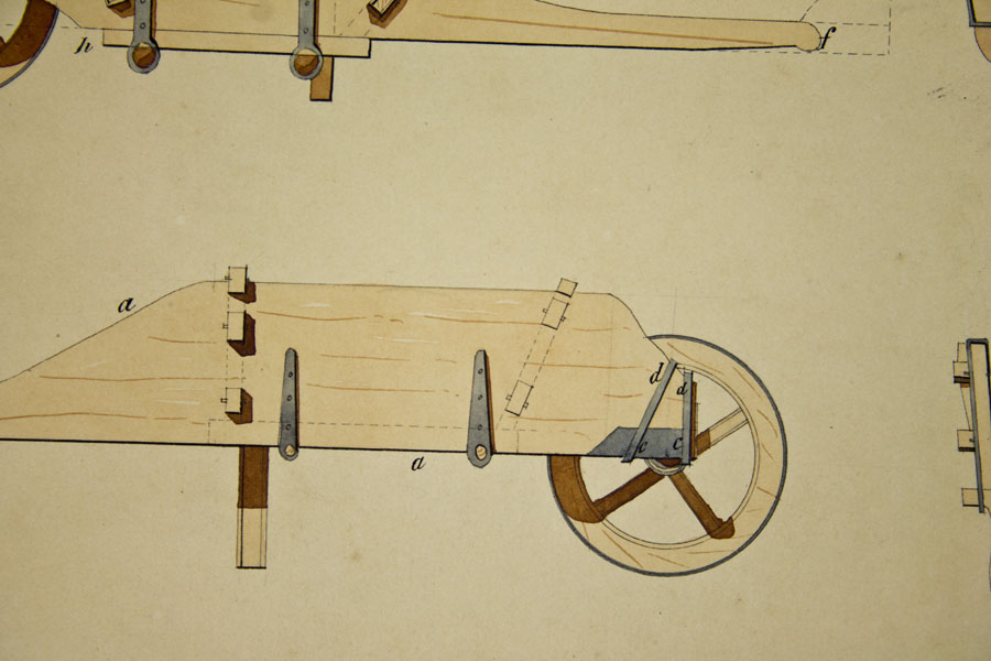 Ferdinand Lande (born 1851 ), Designs of various push and shove trolleys, 1851, Watercolor
