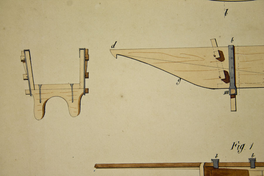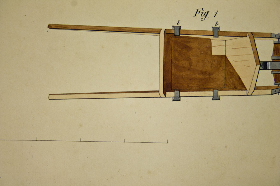 Ferdinand Lande (*1851 ), Schubkarren, Schiebkarren, Leitmeritz 1851, Entwürfe, 1851, Aquarell