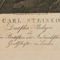 - Inscription: Lower middle signed in the printing plate: “F. Lehmann ad viv. del. et sculp. Berlin”. At the lower part inscribed in the printing plate: “D. Carl Steinkopf / Deutscher Prediger […]”.