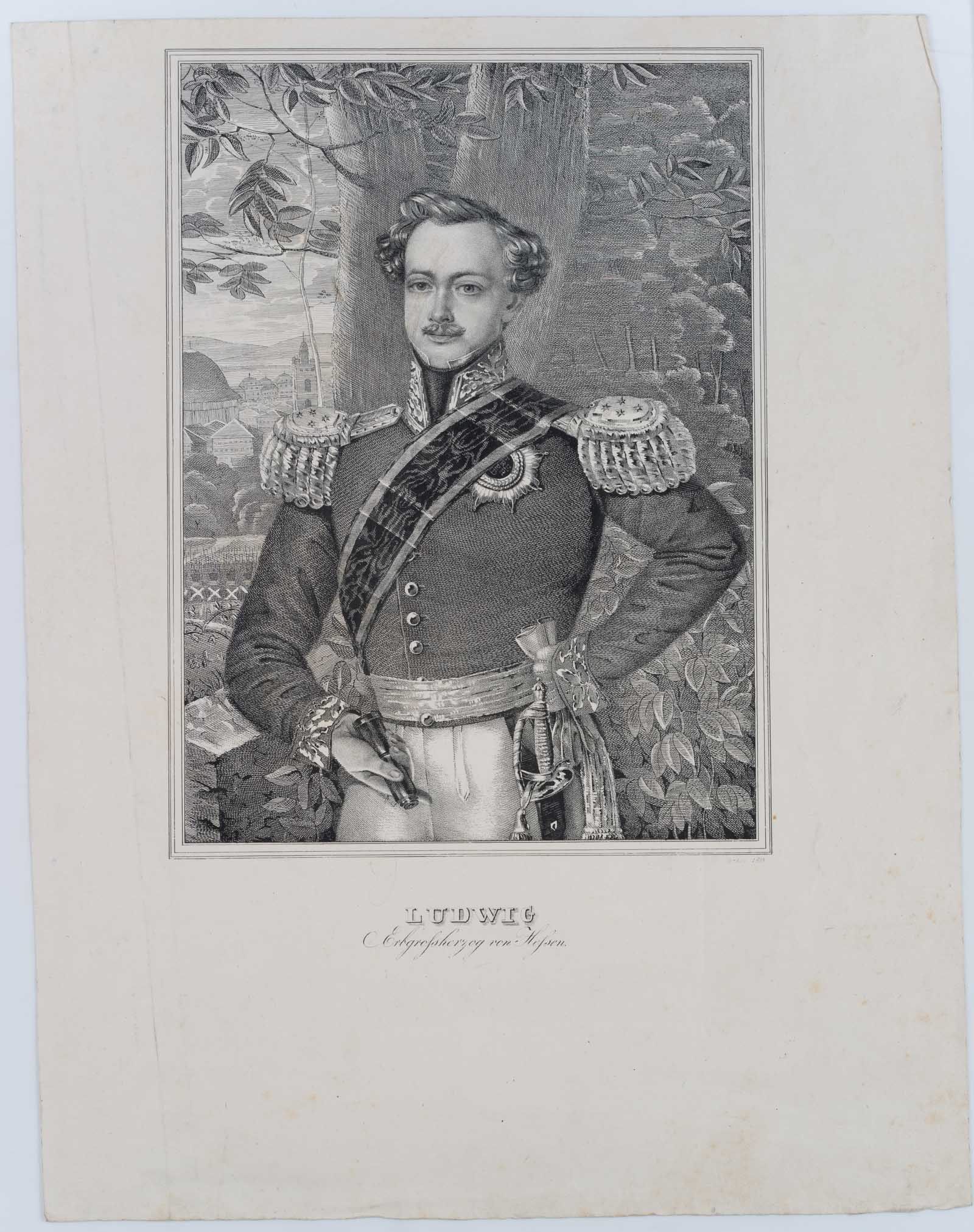 • Description: Portrait of Ludwig III, Duke of Hesse and by Rhine in a kneeler and military uniform. Considered more open-minded in his character than his father, Ludwig was the bearer of hope for liberalism during the March Revolution. He was appointed co-regent in Hesse on 5 March 1848.