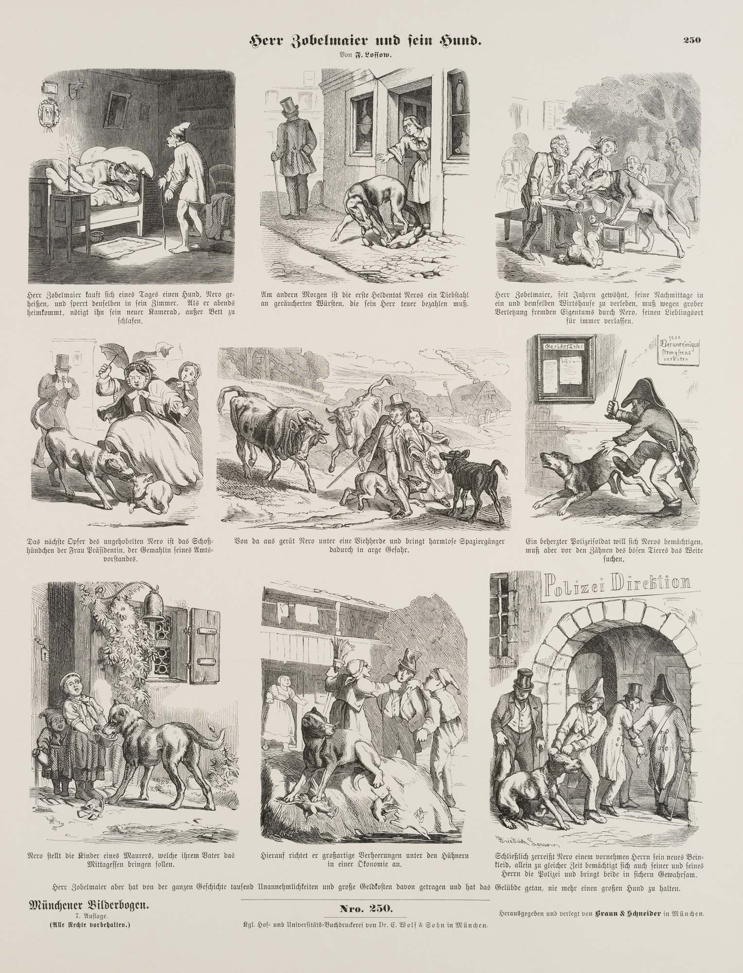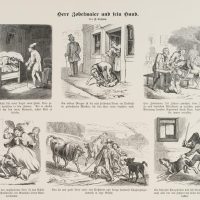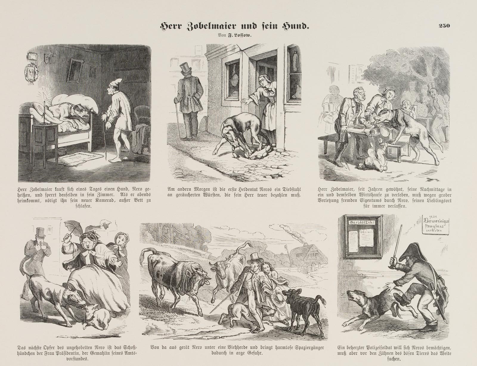 Friedrich Lossow (1837 München – 1872 ebd.), Herr Zobelmaier und sein Hund, Münchener Bilderbogen, 250, HSt, 19. Jahrhundert, Holzschnitt