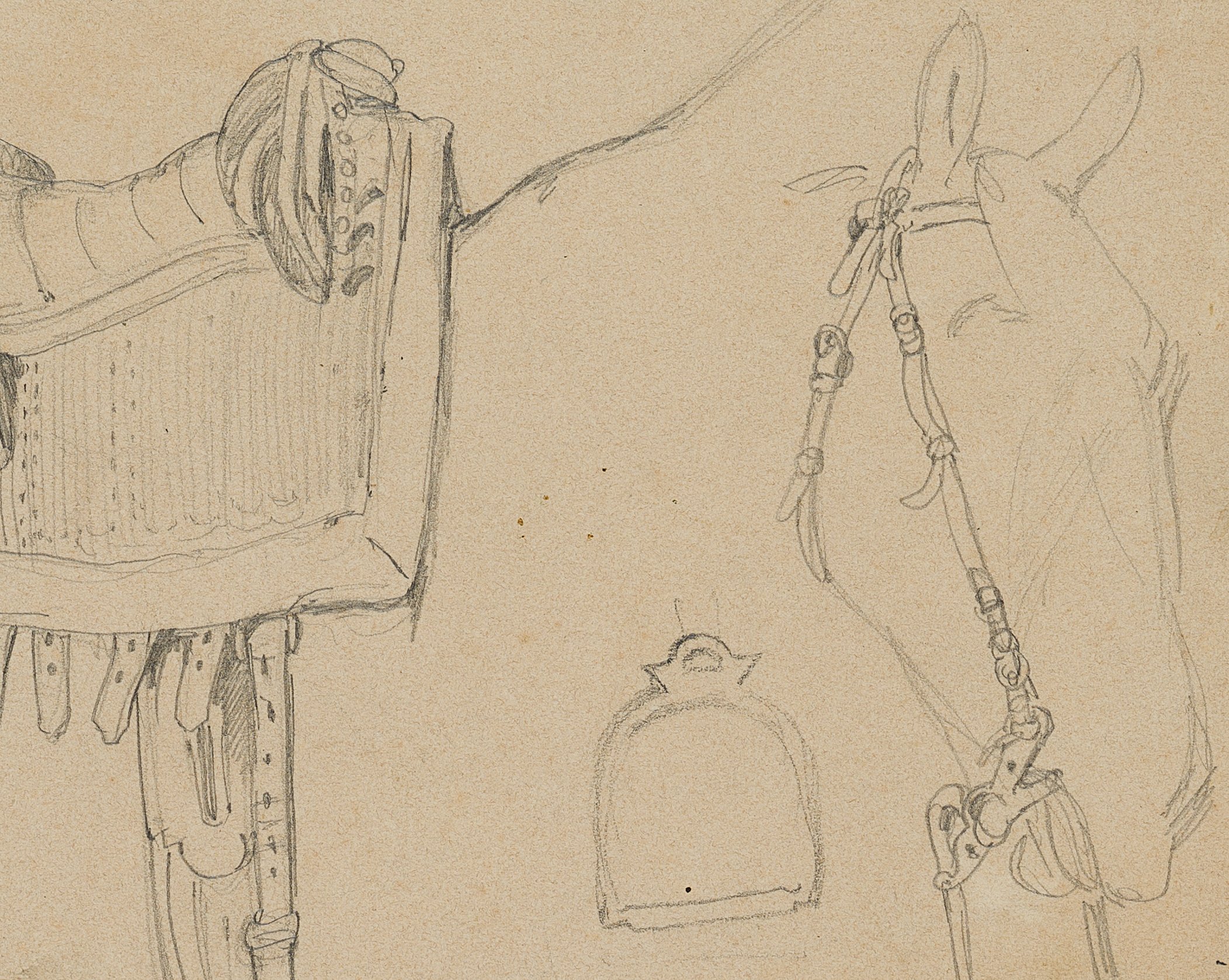 Friedrich Lossow (1837 München – 1872 ebd.), Studie eines Sattels und Zaumzeuges, 19. Jahrhundert, Bleistift