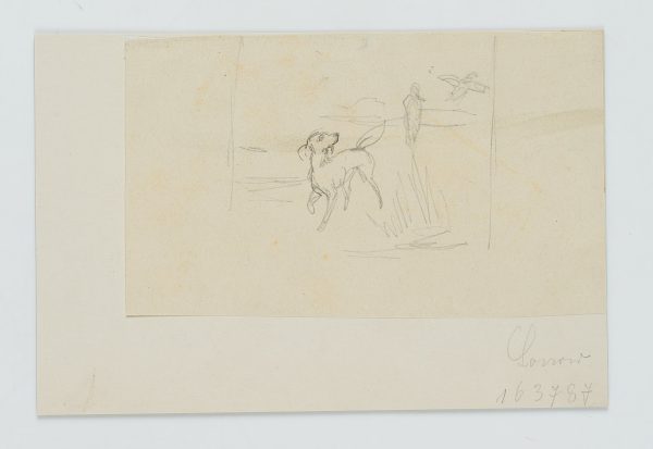 Friedrich Lossow (1837 Munich – 1872 ibid.), Study, Hunting dog with two birds, 19th century, Pencil