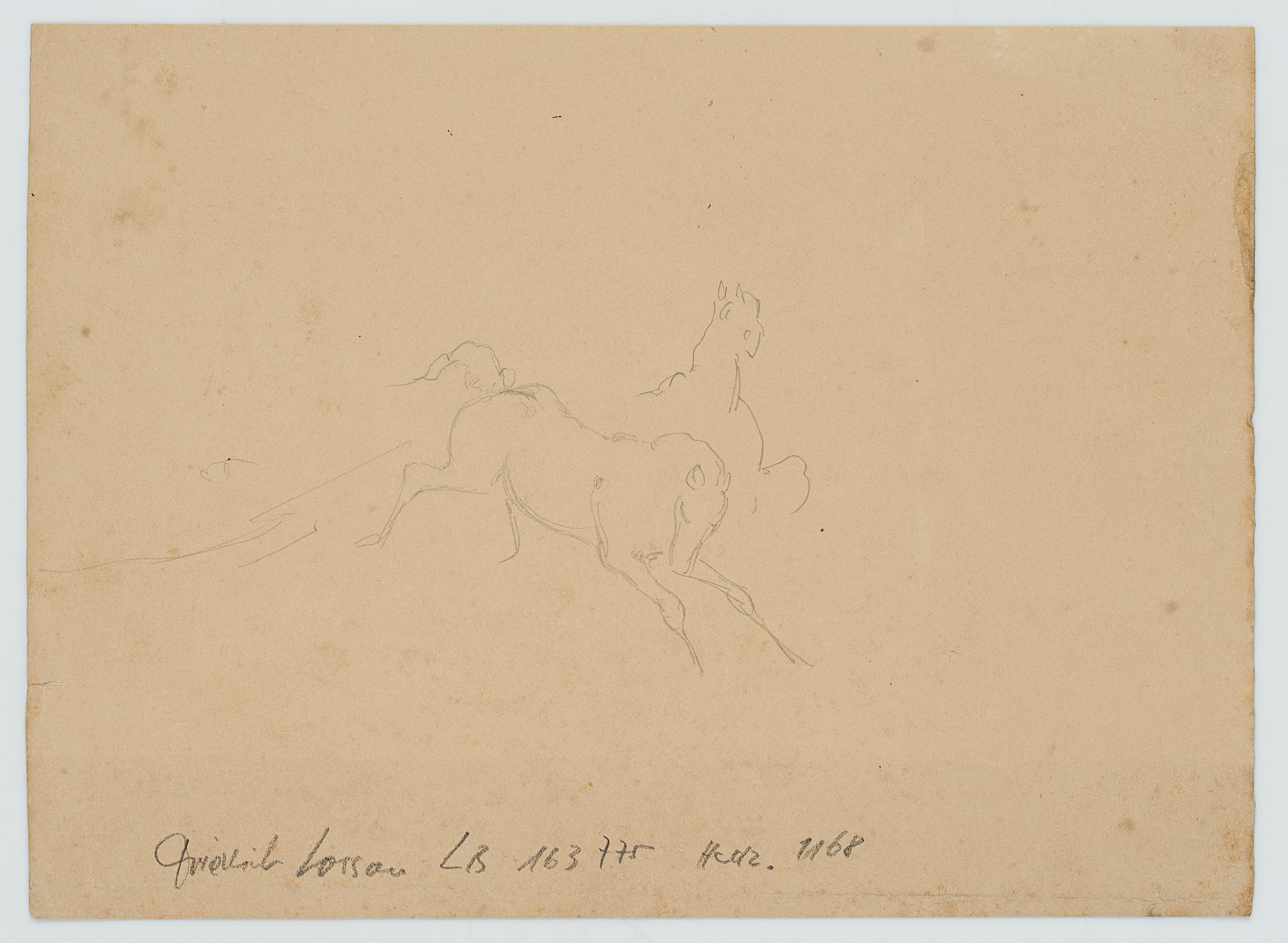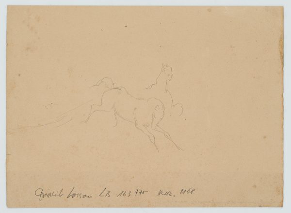 - Verso: Skizze galoppierender Pferde