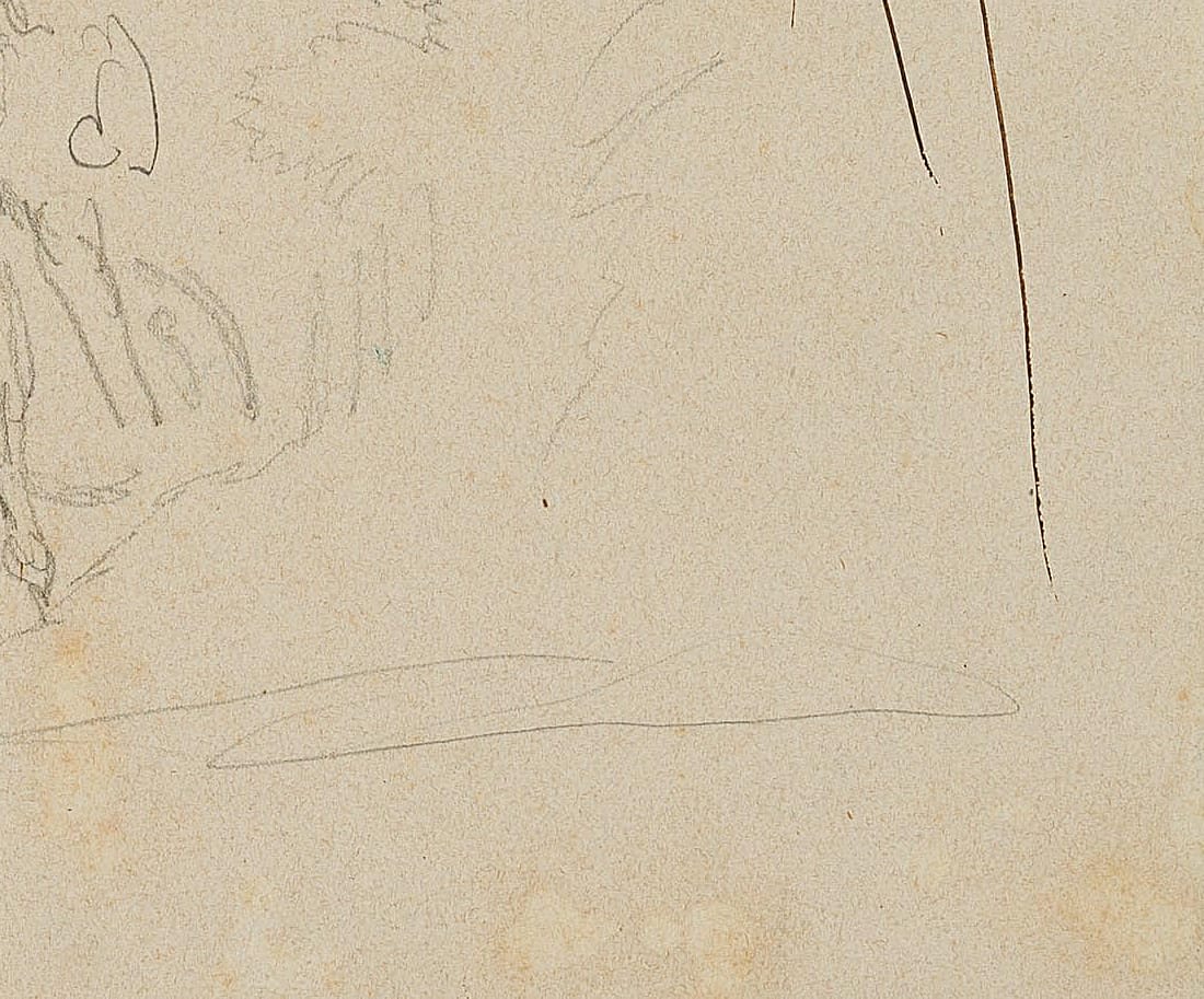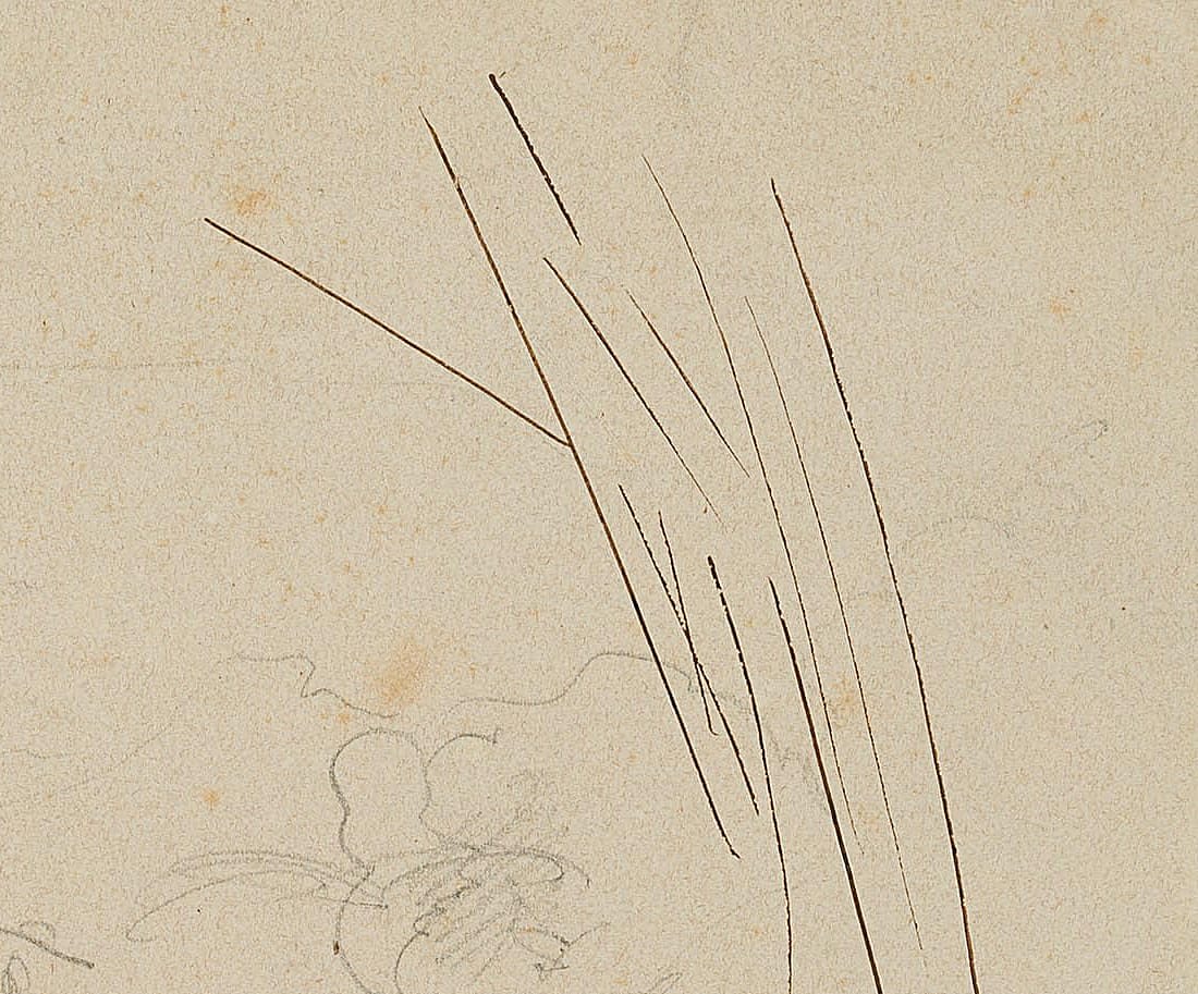 - Technik: Bleistift und Tusche auf Papier, montiert auf Papier