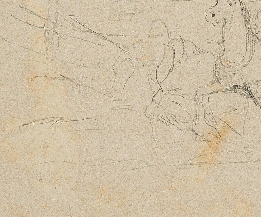 Friedrich Lossow (1837 München – 1872 ebd.), Studie, Reiter mit Zugpferden, 19. Jahrhundert, Bleistift