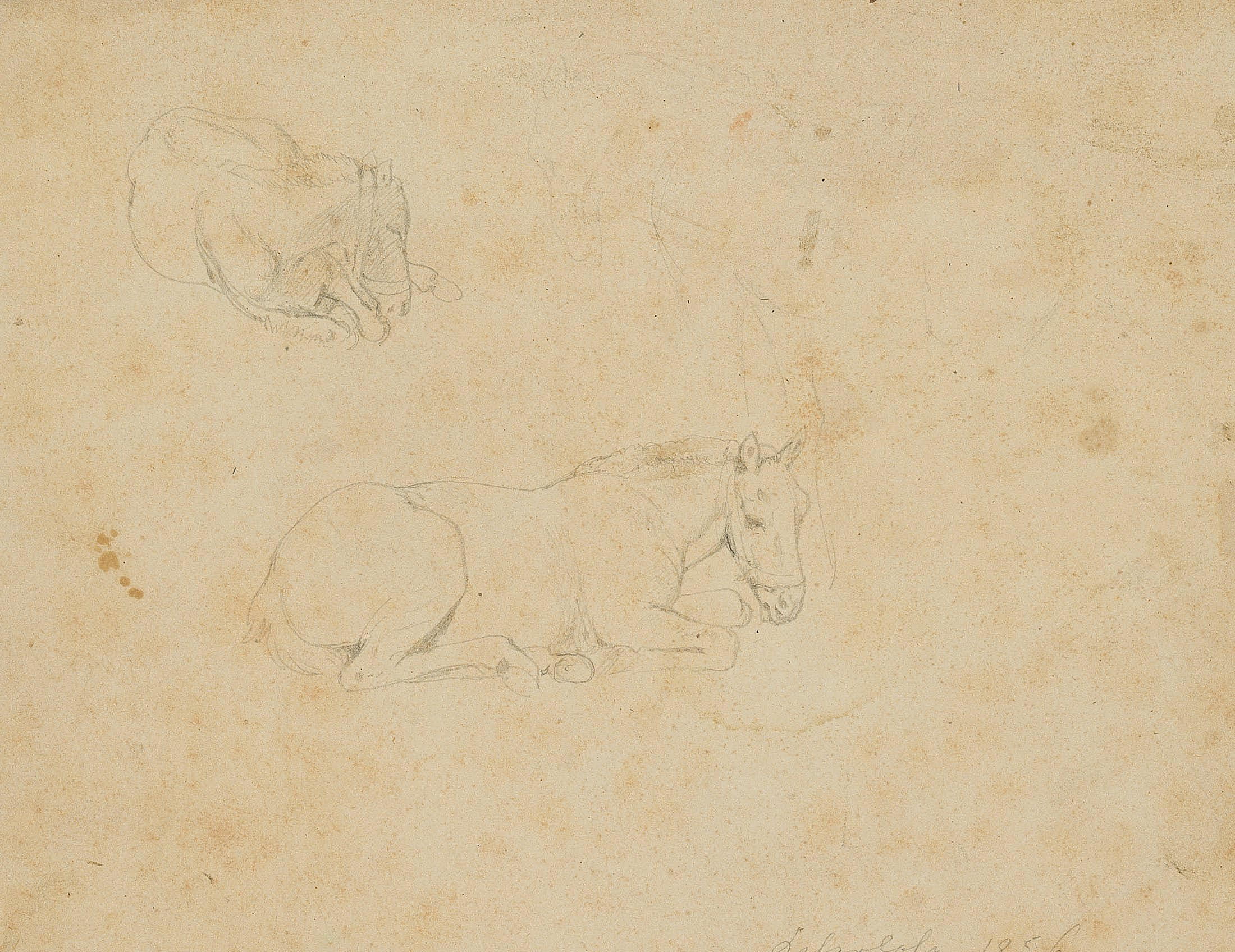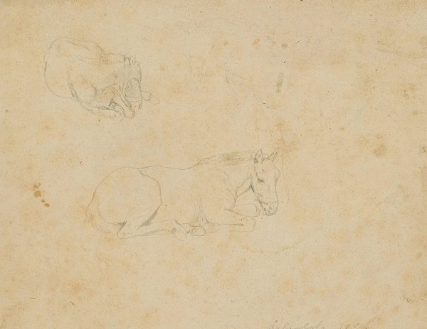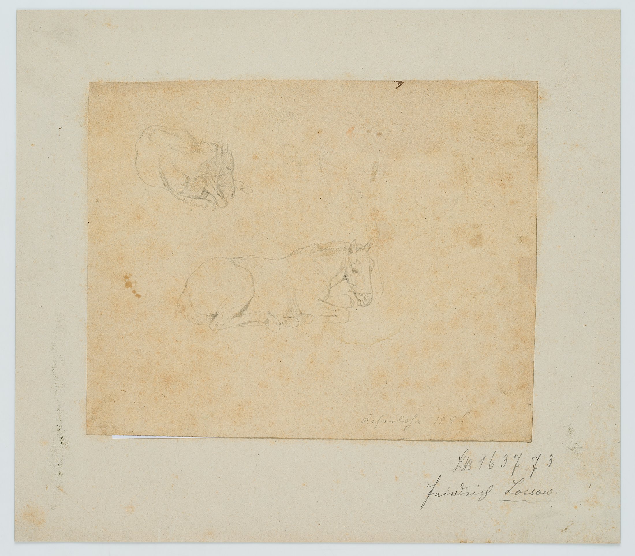 Friedrich Lossow (1837 München – 1872 ebd.), Studie zweier rastender Pferde, 1856, Bleistift