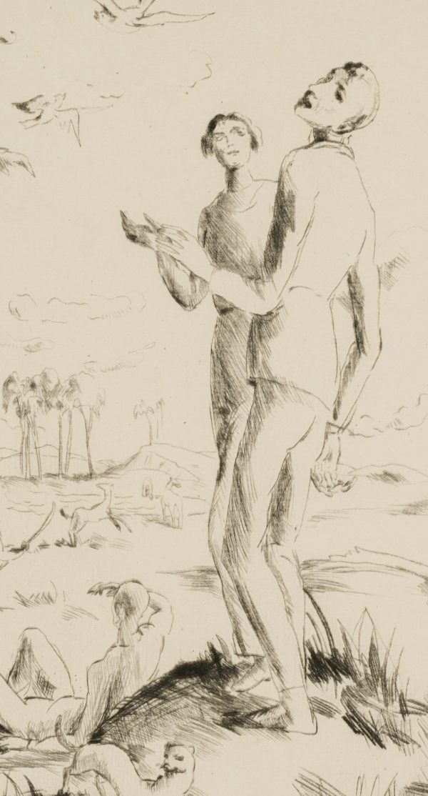 Felix Meseck (1883 Gdansk – 1955 Höxter), Peace, Idyll, Young couple in peaceful landscape, c. 1920, Etching