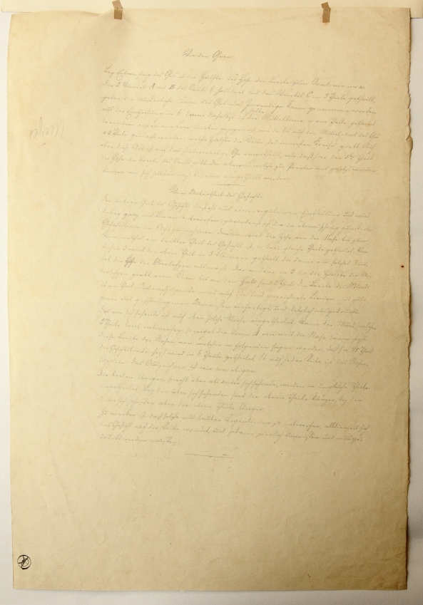- Beschreibung: Rückseitig befindet sich ein handgeschriebener Text des Autors mit ergänzenden Beschreibungen zu den umseitigen Zeichnungen.