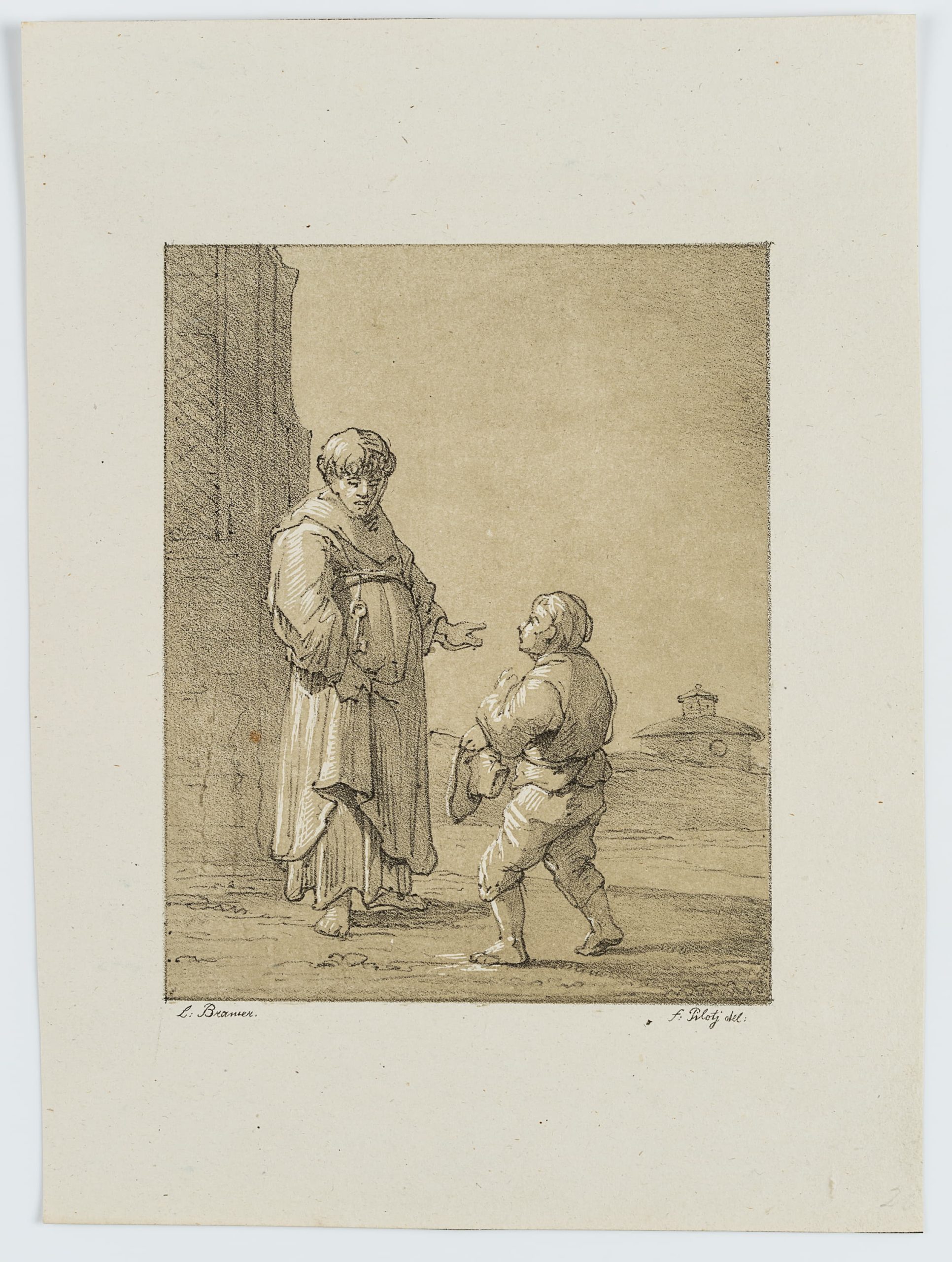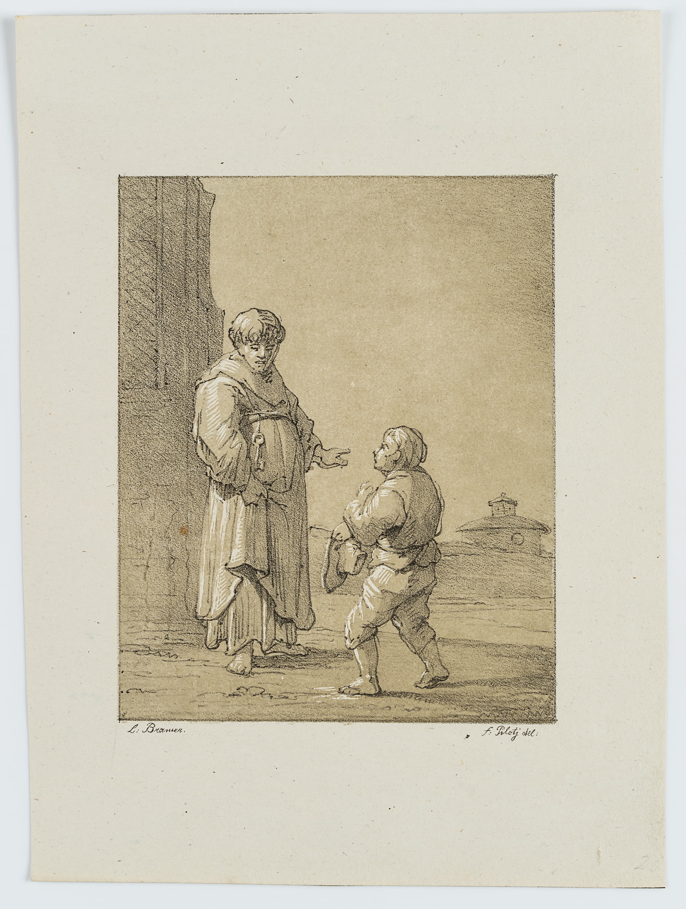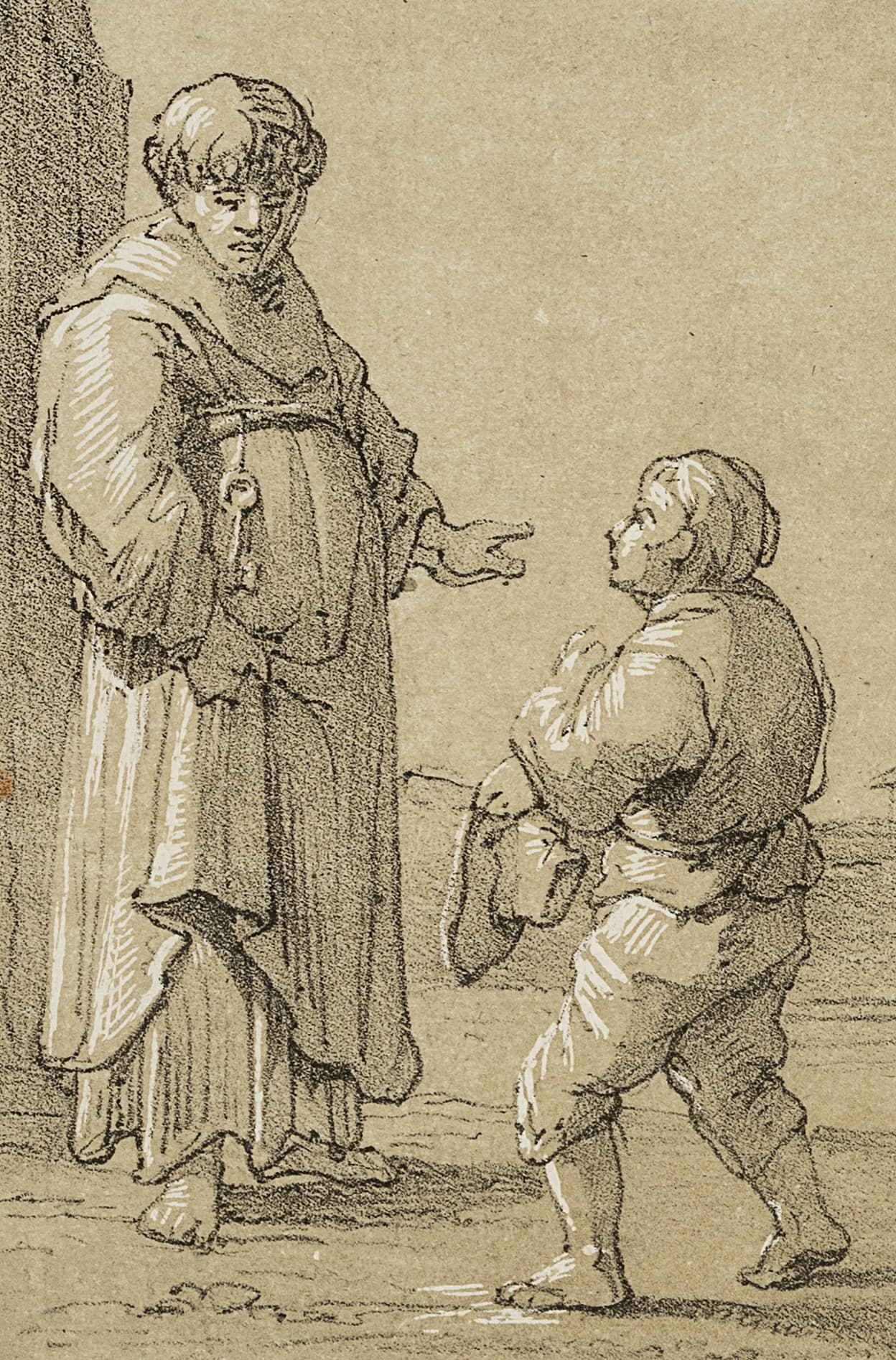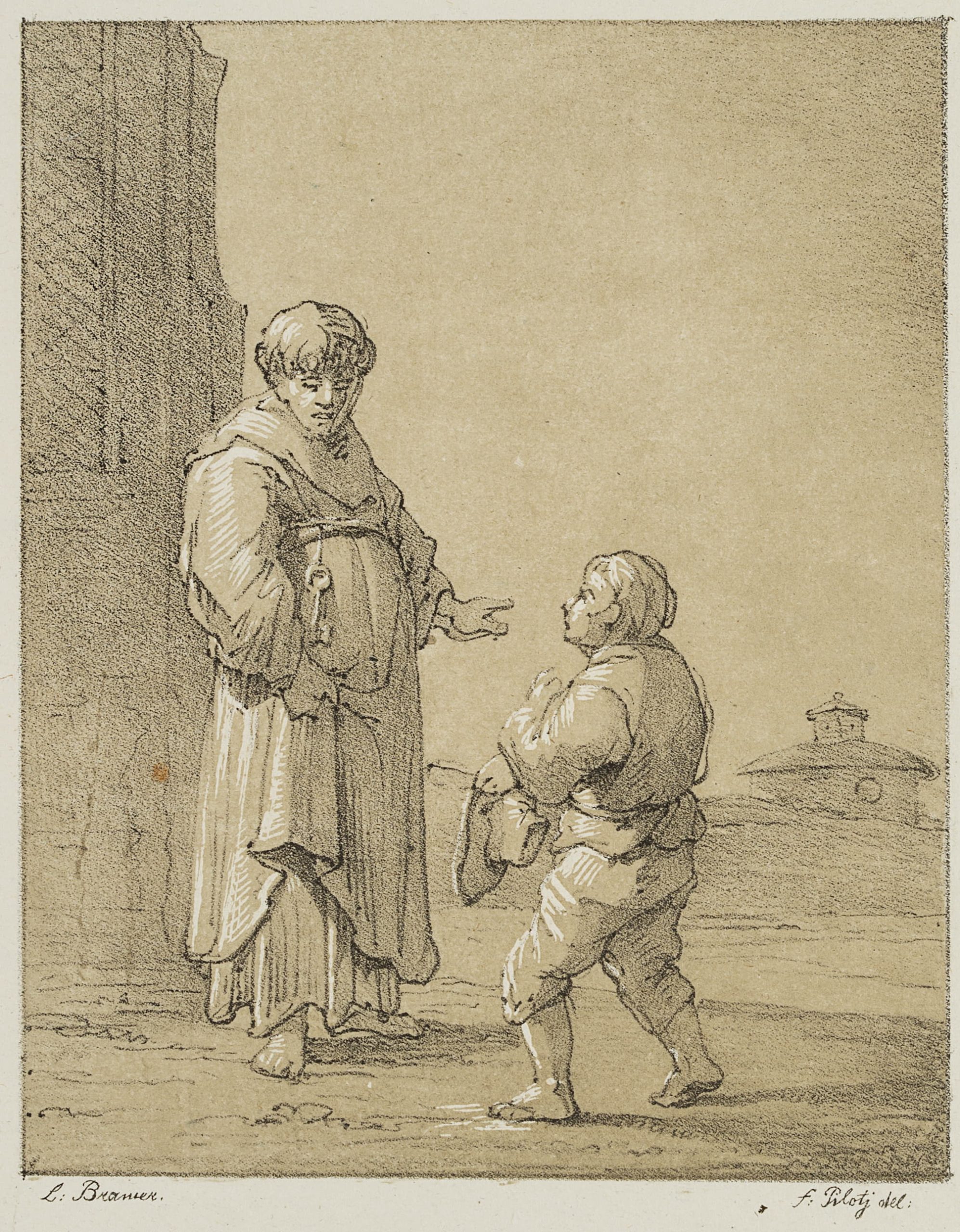 Ferdinand Piloty d. Ä. (1786 Homburg – 1844 München), Bittsteller und Mönch, um 1808, Lithographie