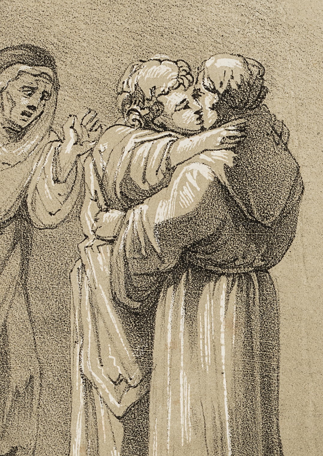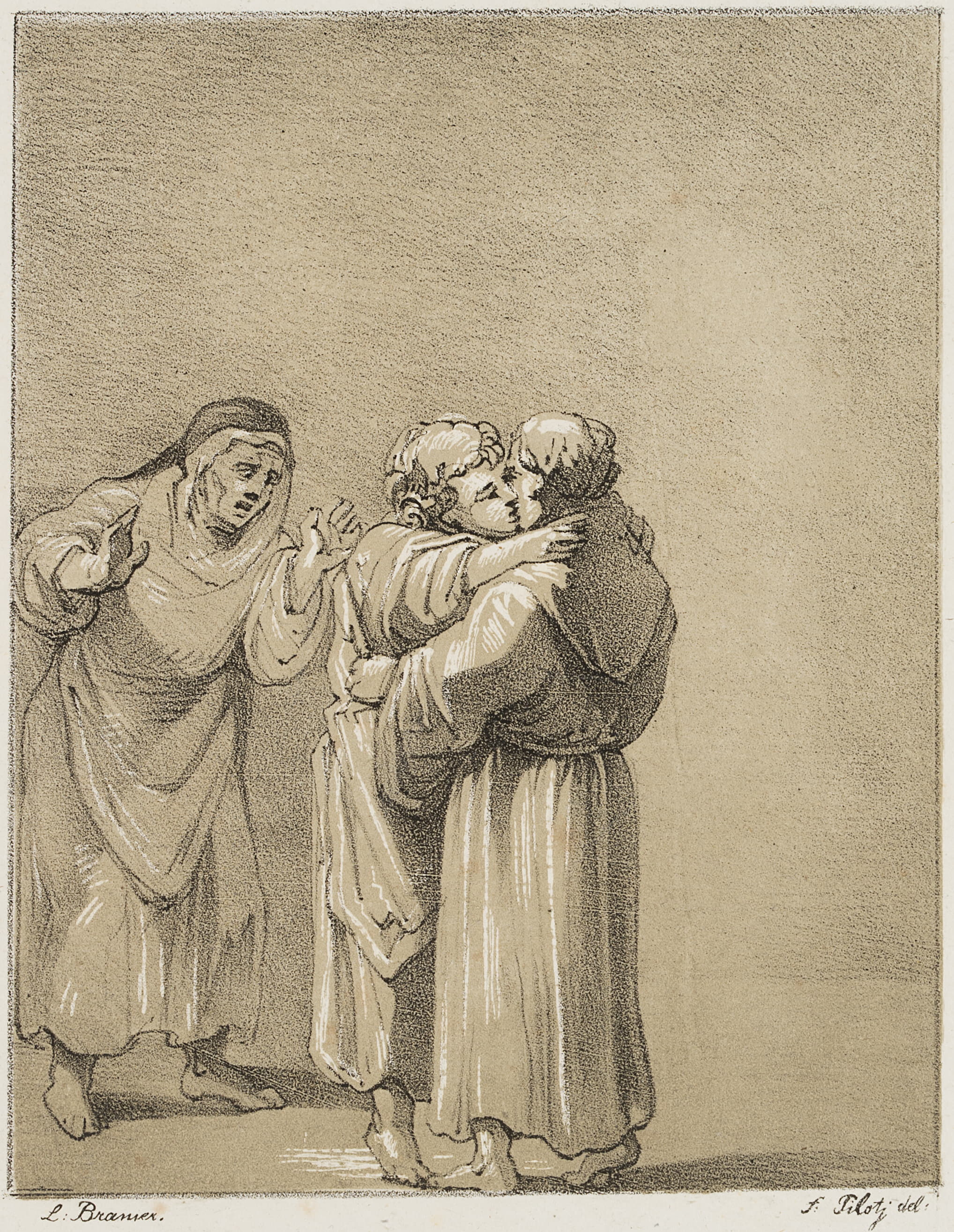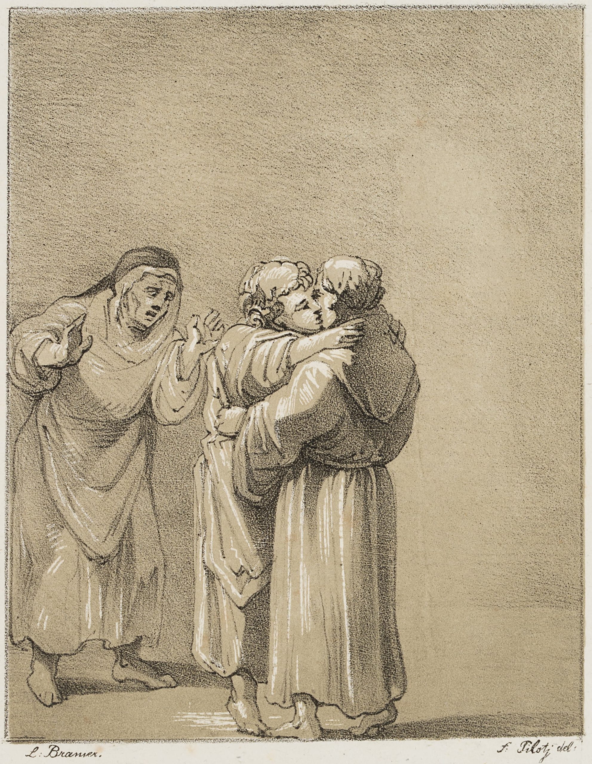 Ferdinand Piloty sen. (1786 Homburg – 1844 Munich), Monk and nun kissing, c. 1808, Lithography