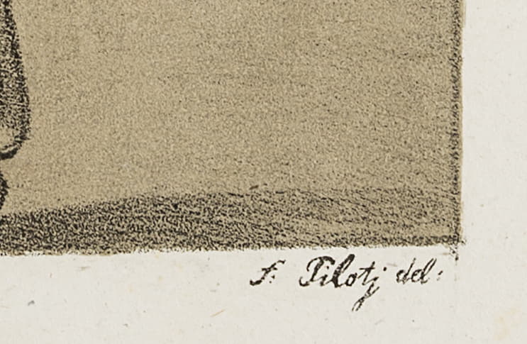 Ferdinand Piloty war ein deutscher Lithograph, der sich besonders durch die druckgraphische Reproduktion alter Handzeichnungen einen Namen gemacht hat. In München gab er zwischen 1808 und 1815 gemeinsam mit Johann Nepomuk Strixner eine umfangreiche Folge von Lithographien nach den Altmeisterzeichnungen heraus. Das vielseitige Werk hebt das ganze Können der beiden Künstler hervor, die mit einfühlsamem Blick die Zeichnungen auf den Stein kopierten und in ihren Reproduktionen einen guten Eindruck des originalen Werkes vermitteln. Charakteristisch ist vielen Blättern die Grundlage einer dezent farbigen Tonplatte mit Auskratzungen, wodurch vermutlich Weißhöhungen und unterschiedliche Papierfarben der Originale imitiert werden sollen. Piloty und Strixner nutzten die Technik der Lithographie in allen Facetten und bemühten sich stets, ihren Nachdrucken die gleiche Feinheit und Tiefe zu verleihen, die die Handzeichnungen der Alten Meister auszeichnen.