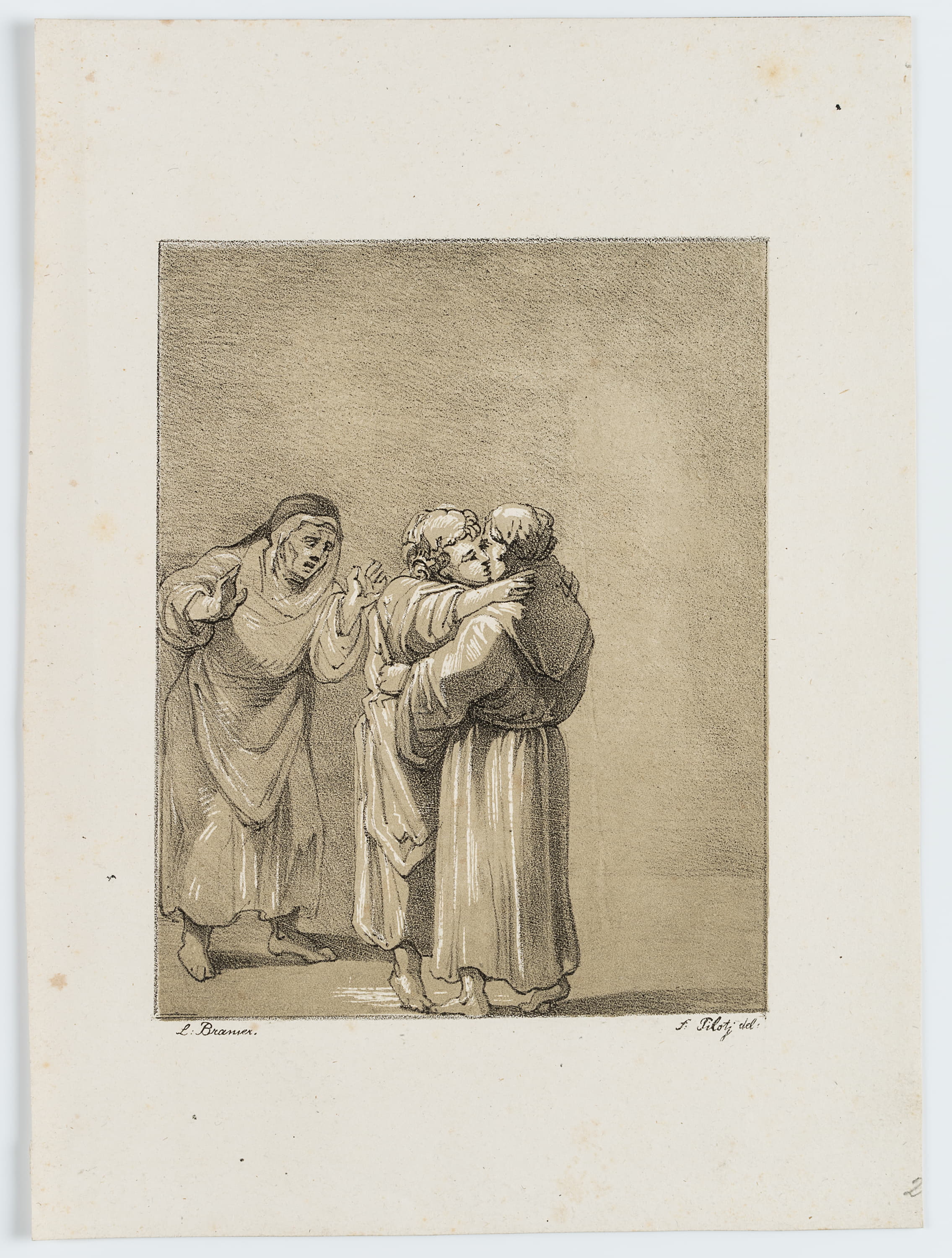 • Description: Ferdinand Piloty was a German lithographer who made a name for himself especially through the print reproduction of old hand drawings. In Munich between 1808 and 1815, together with Johann Nepomuk Strixner, he published an extensive series of lithographs after the old masters’ drawings. The varied oeuvre highlights the full skill of the two artists, who copied the drawings onto the stone with a sensitive eye and whose reproductions give a good impression of the original work. Characteristically, many of the sheets are based on a subtly coloured clay plate with scratch-outs, presumably intended to imitate white highlights and different paper colours of the originals. Piloty and Strixner used the technique of lithography in all its facets and always strove to give their reprints the same delicacy and depth that characterise the Old Masters’ hand drawings.
