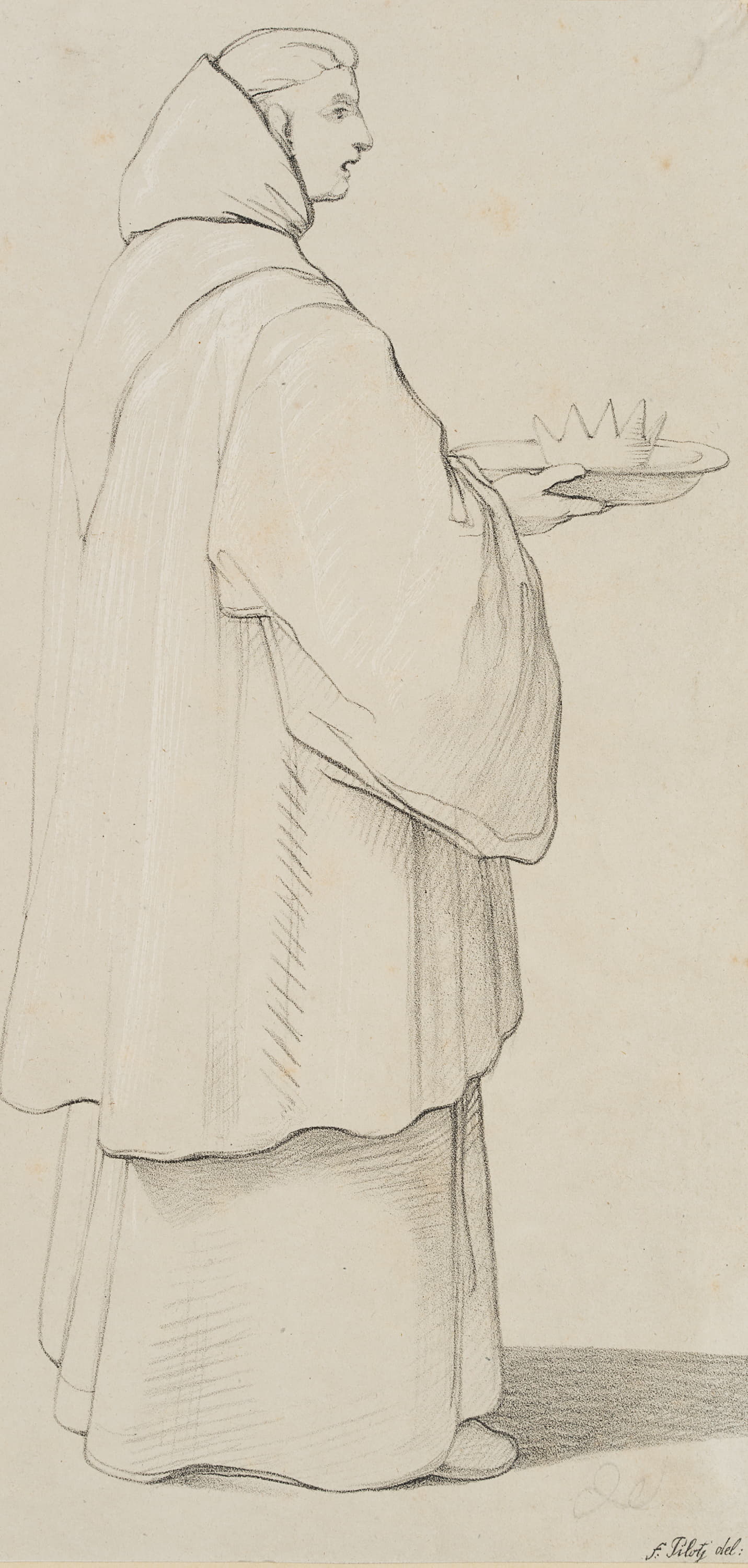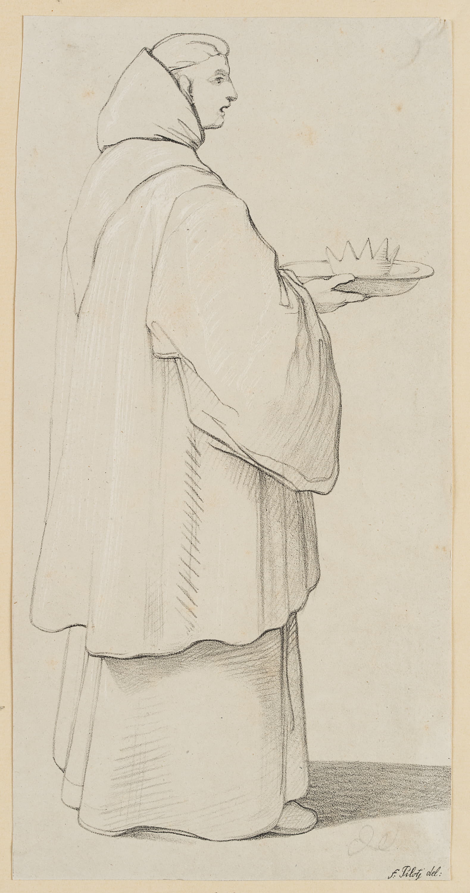 Ferdinand Piloty sen. (1786 Homburg – 1844 Munich), Standing deacon with bowl and crown, c. 1808, Lithography