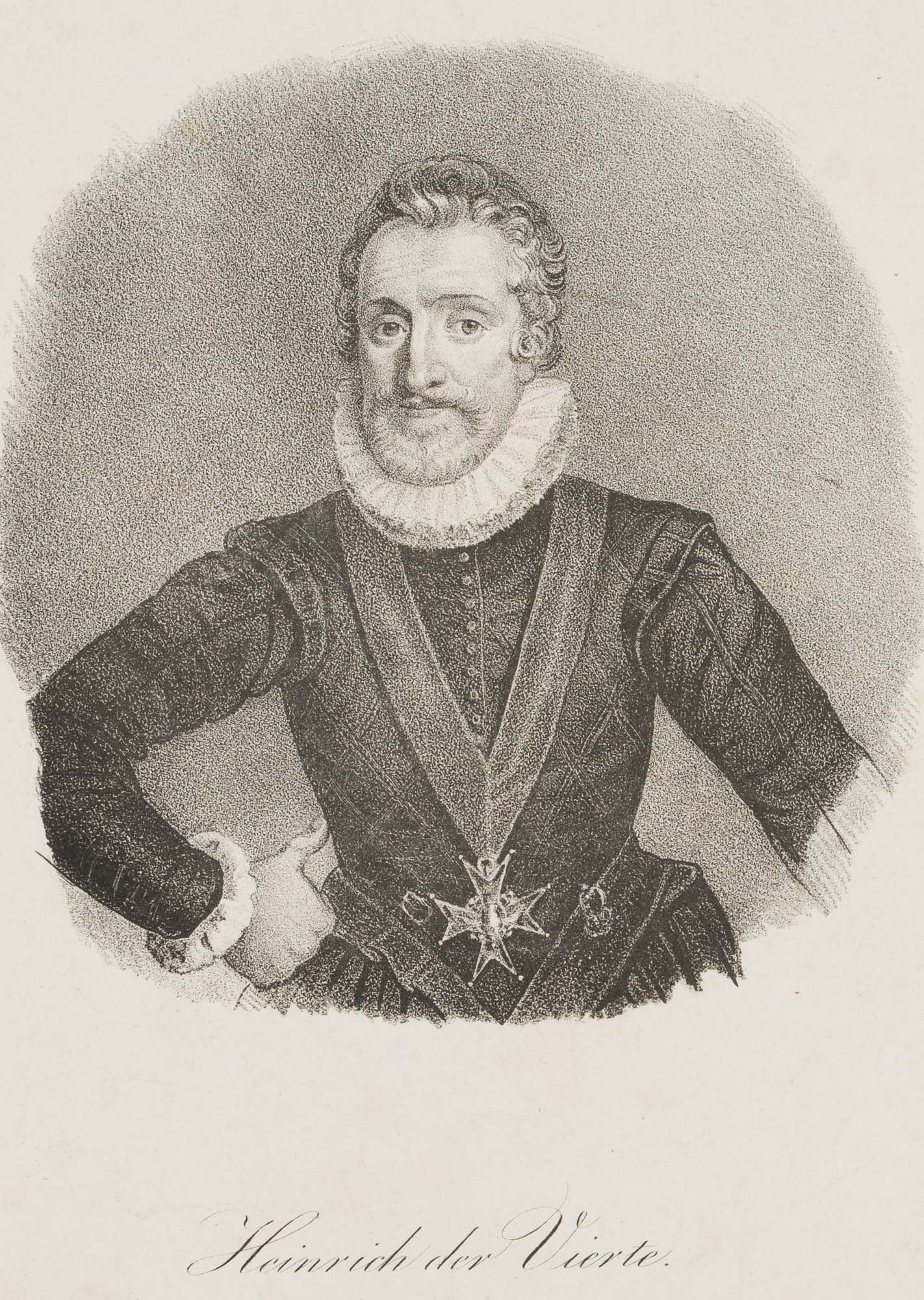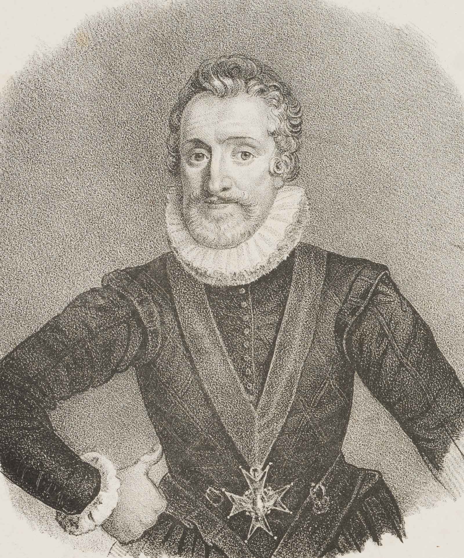 Frans Pourbus (1553 Pau – 1610 Paris), POURBUS, Portrait des Heinrich IV., Bruststück., 19. Jahrhundert, Lithographie