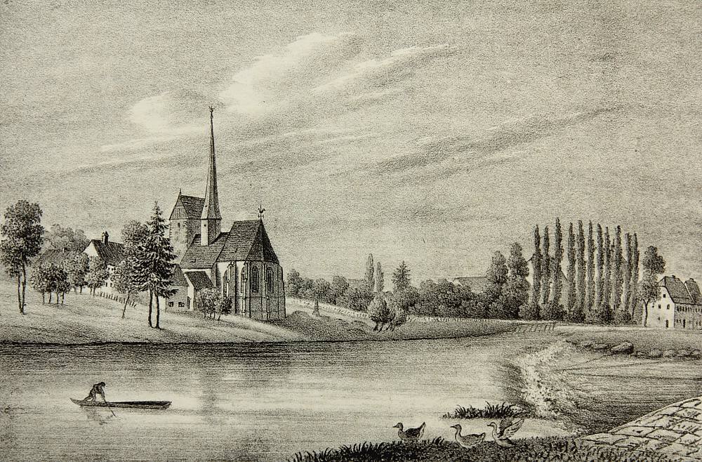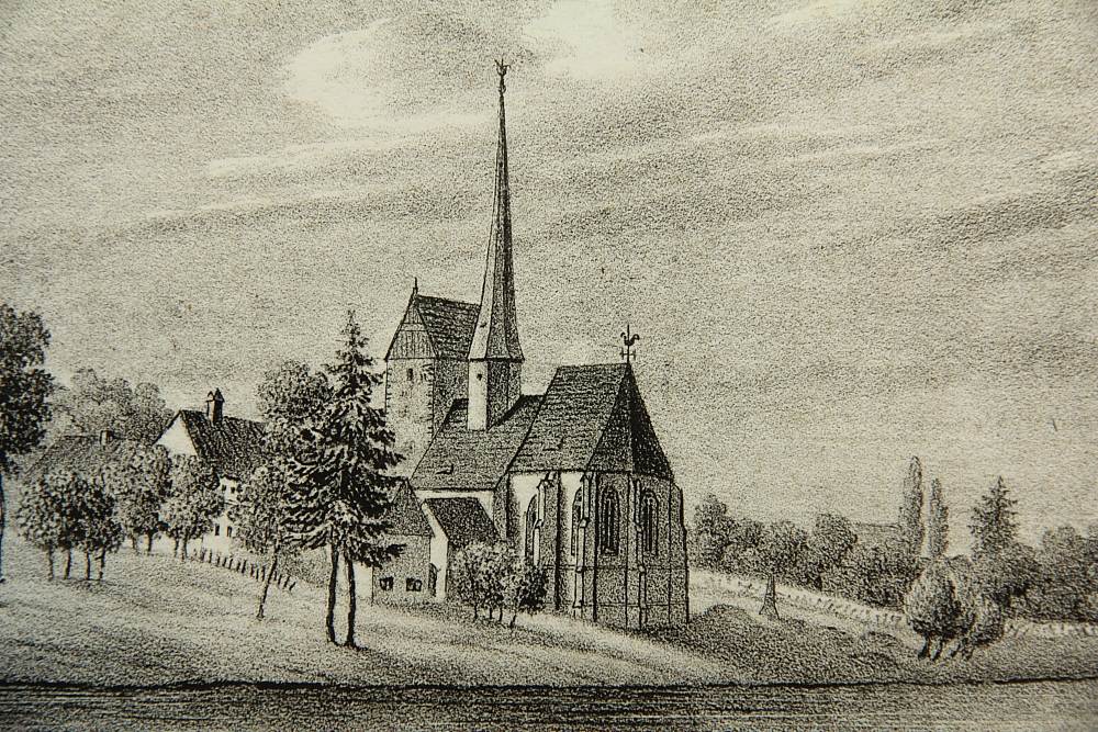 F. A. Renner (19th century), St.Pankratius church in Tragnitz near Leisning, 19th century, Lithography
