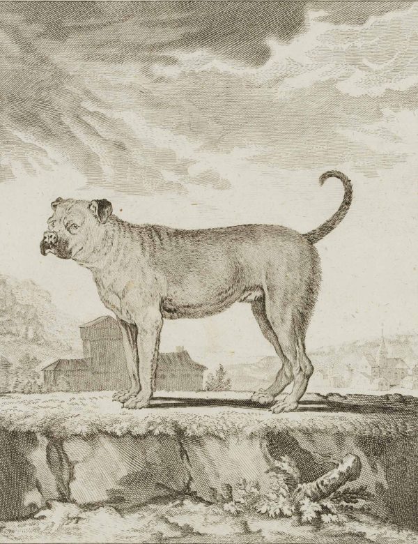 Franz Nikolaus Rolffsen (um 1719 Hamburg – 1802 ebd.), Bullenbeißer. Portrait eines Hundes, 18. Jahrhundert, Kupferstich
