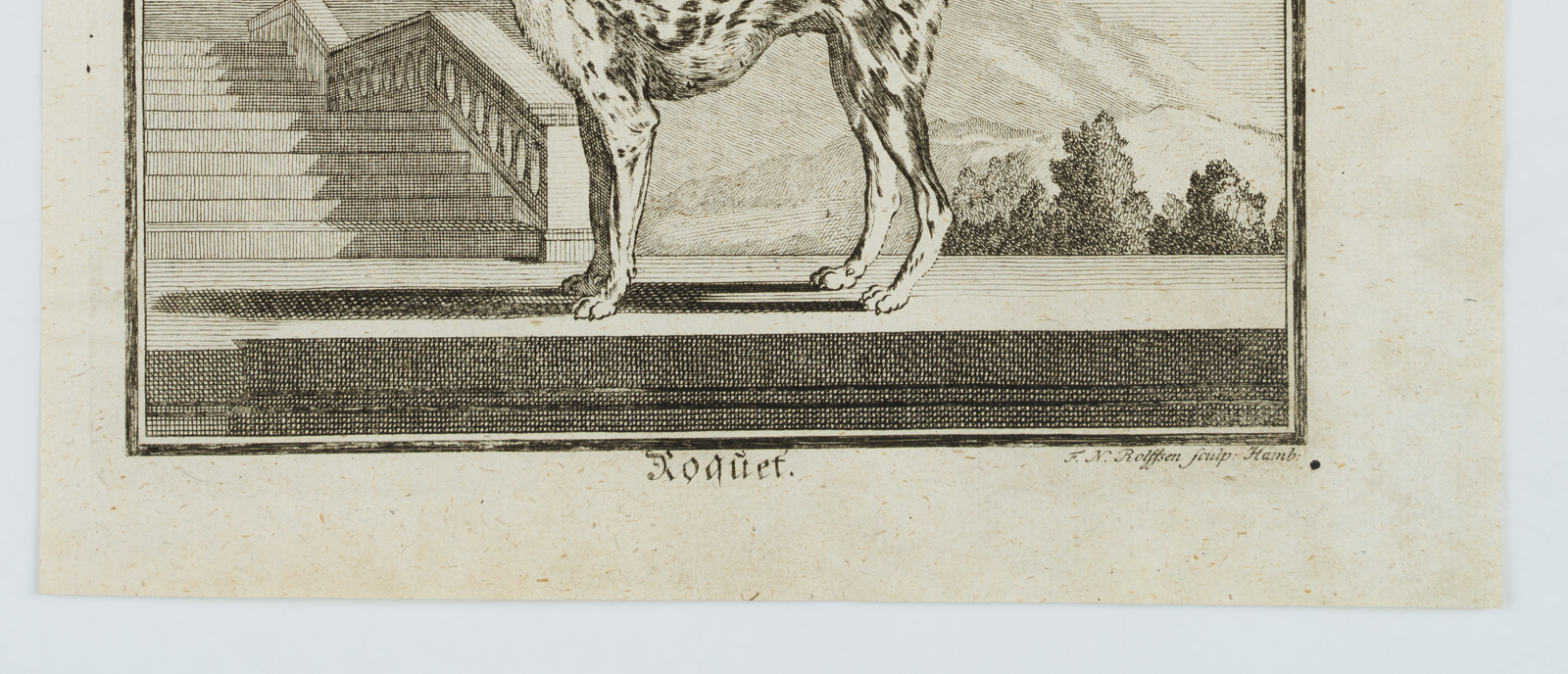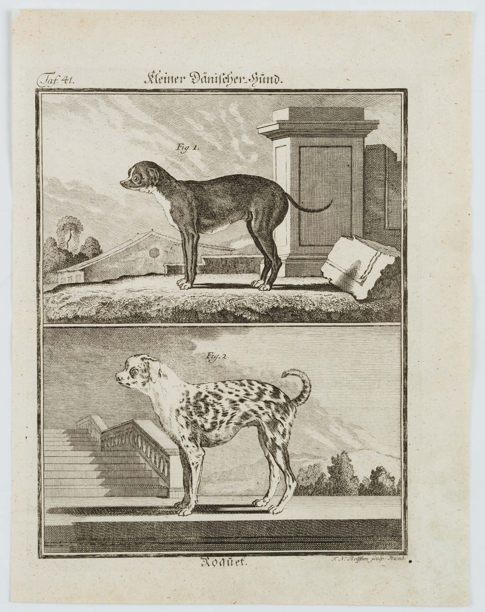 Franz Nikolaus Rolffsen (um 1719 Hamburg – 1802 ebd.), Kleiner Dänischer Hund, 18. Jahrhundert, Kupferstich