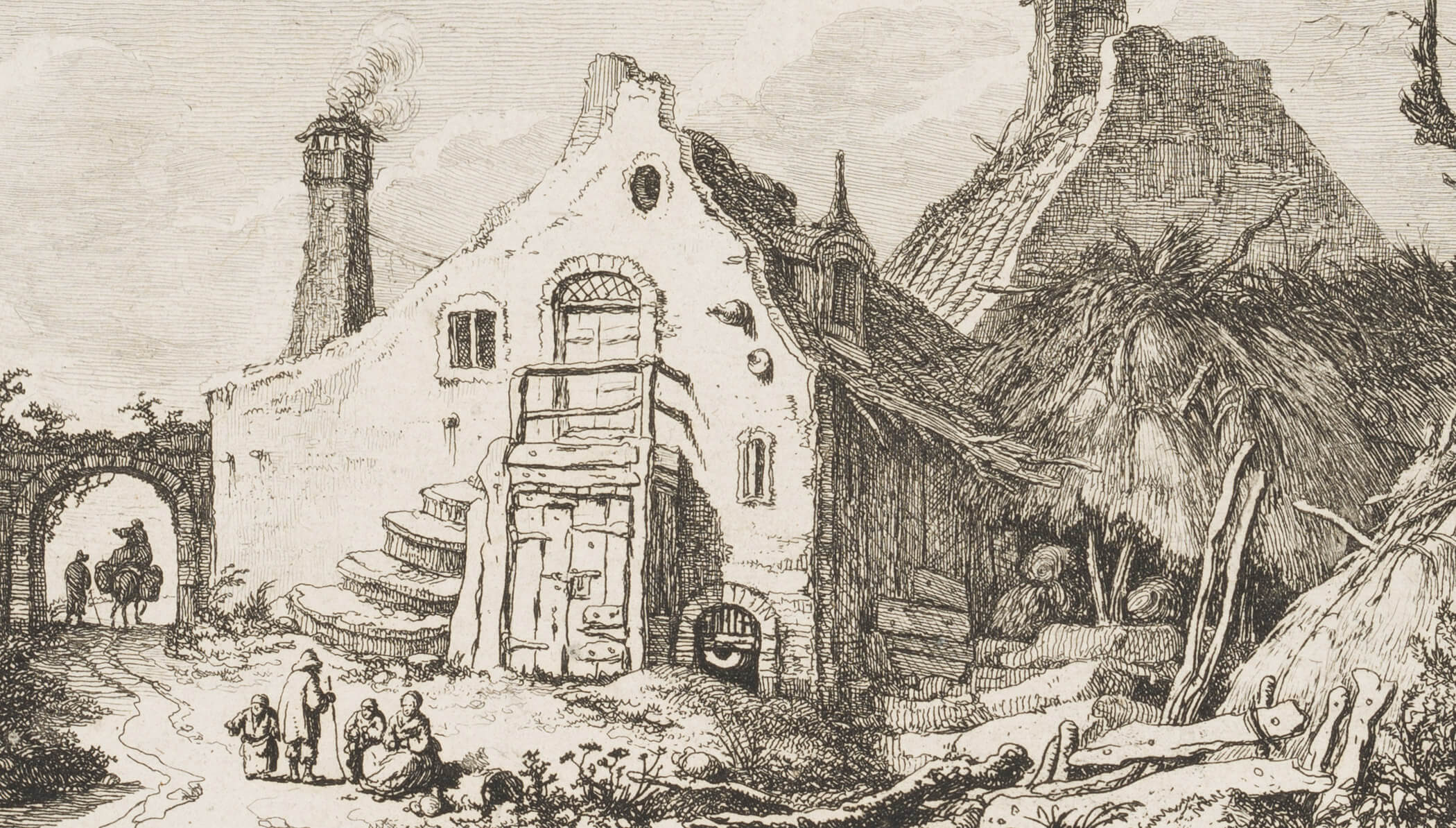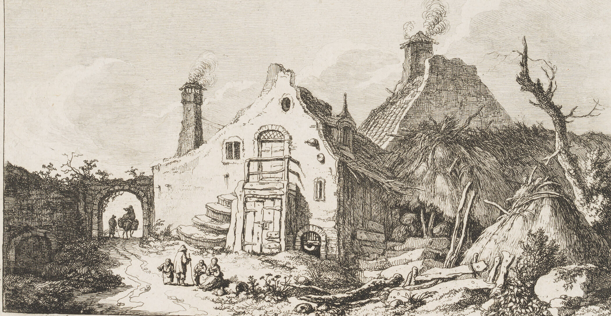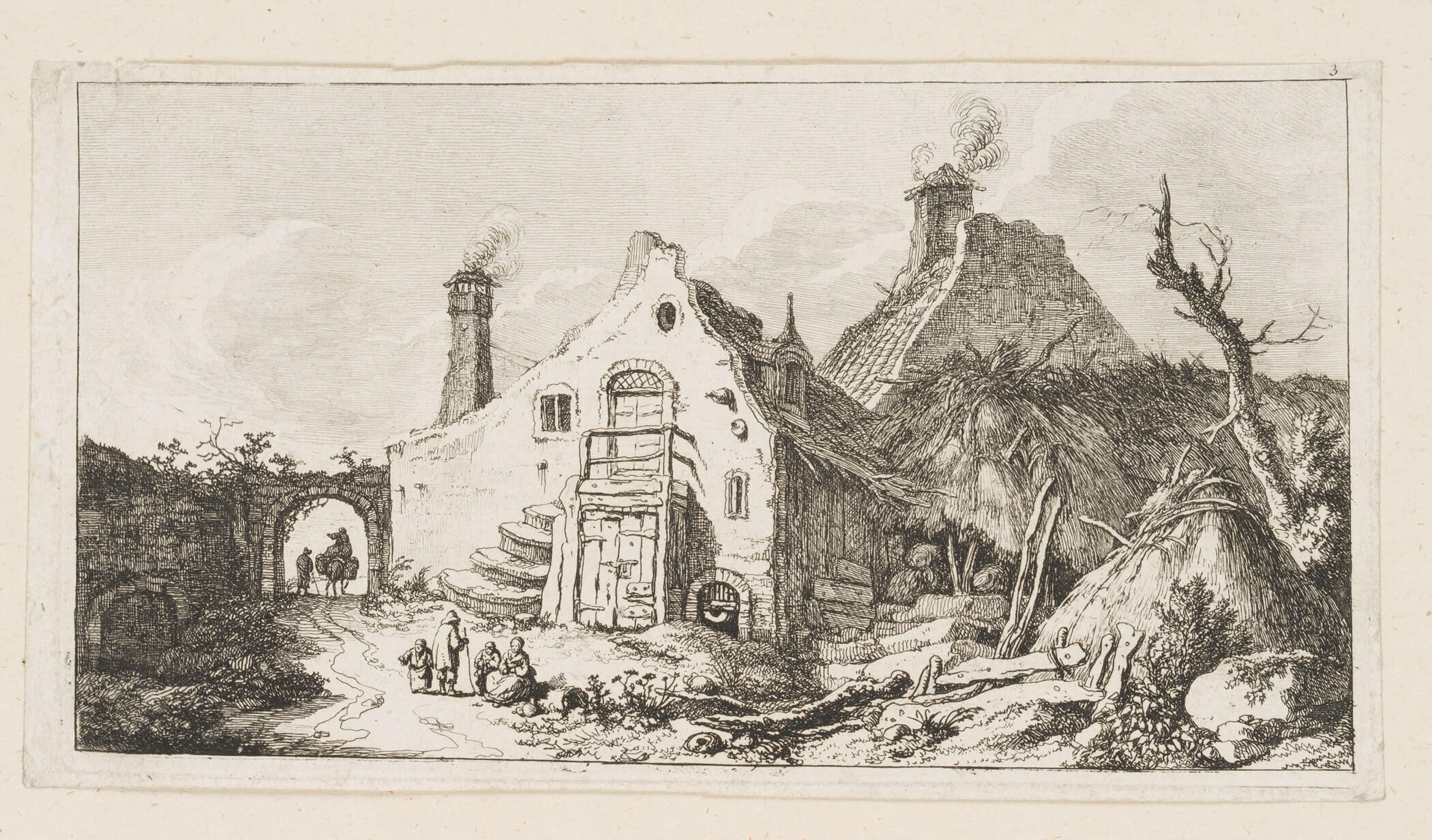 Franz Edmund Weirotter (1733 Innsbruck – 1771 Vienna), Farmhouse with people in the courtyard, 18th century, Etching