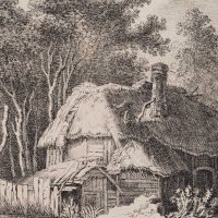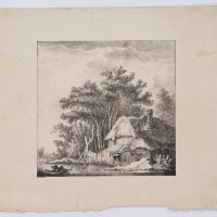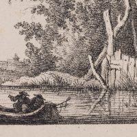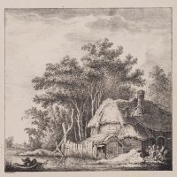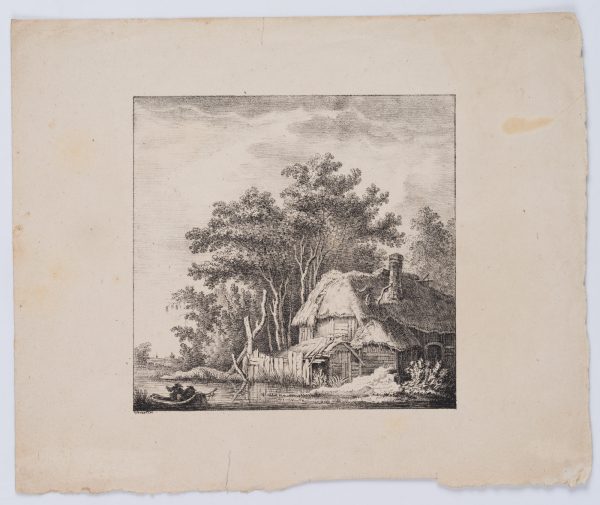Franz Edmund Weirotter (1733 Innsbruck – 1771 Vienna), Fisherman’s hut by the river, landscape with fishing boat, 18th century, Lithography