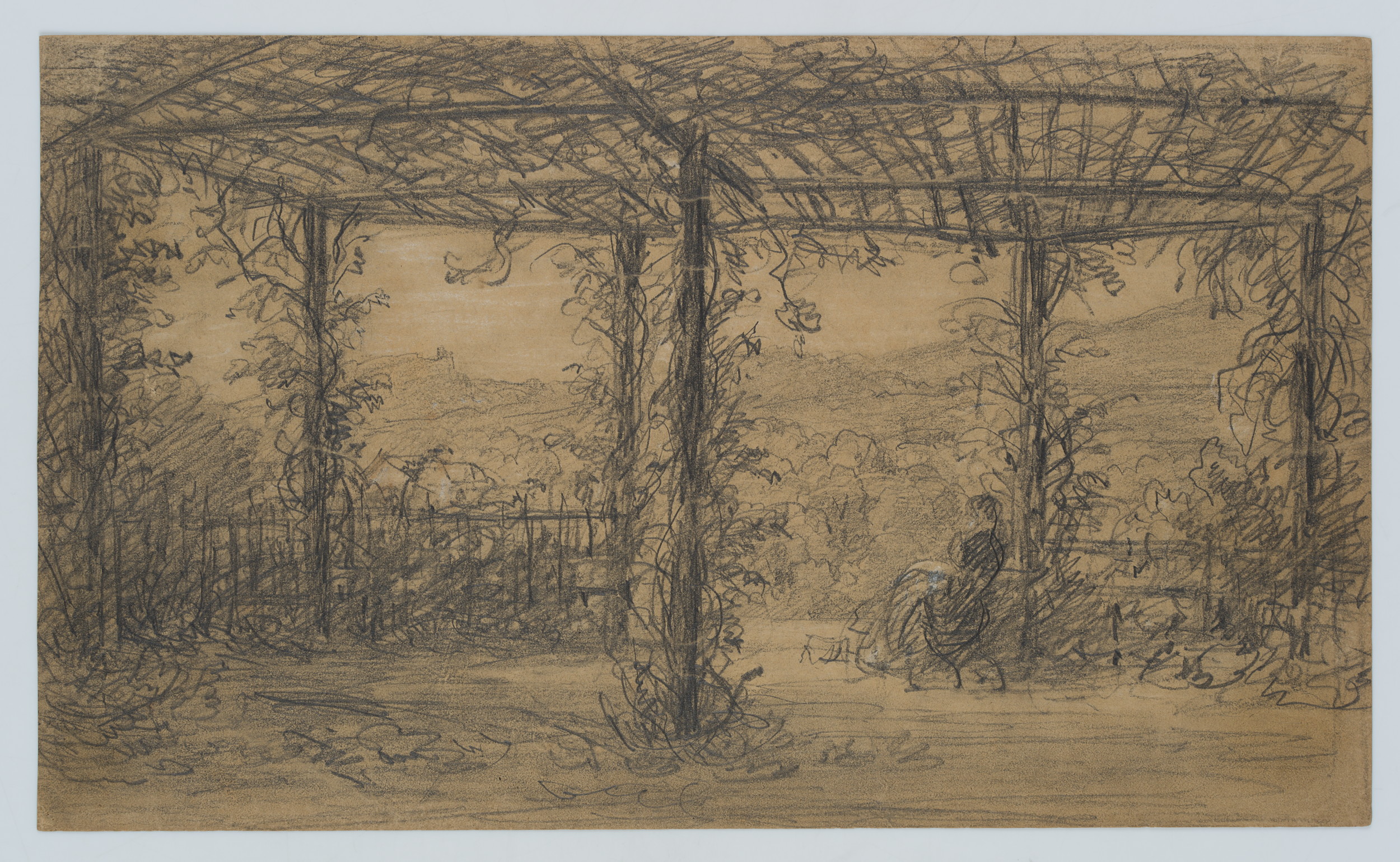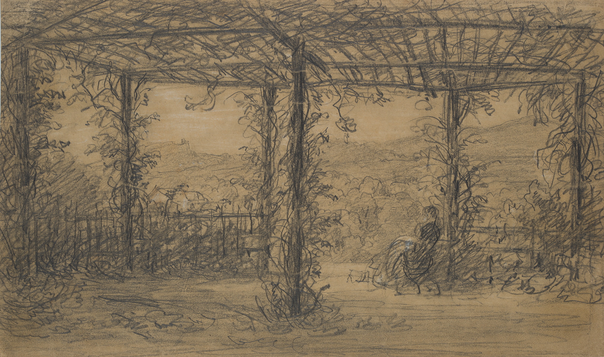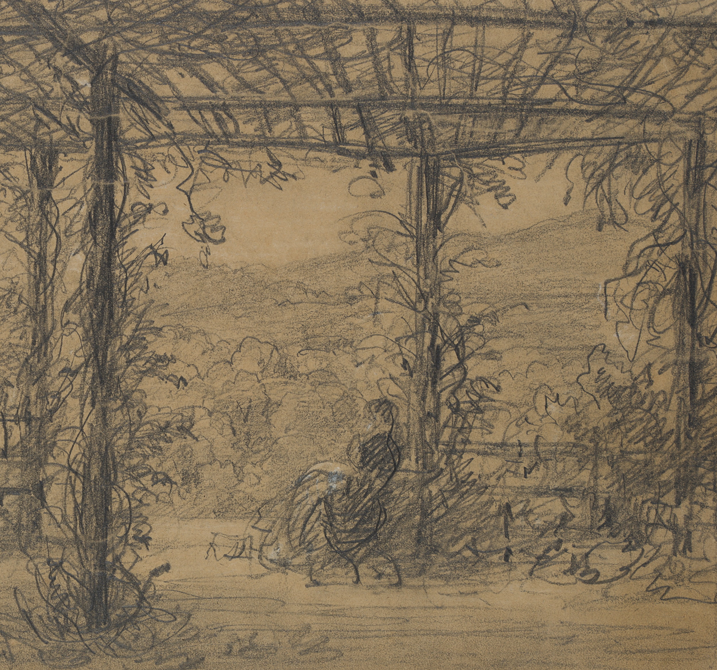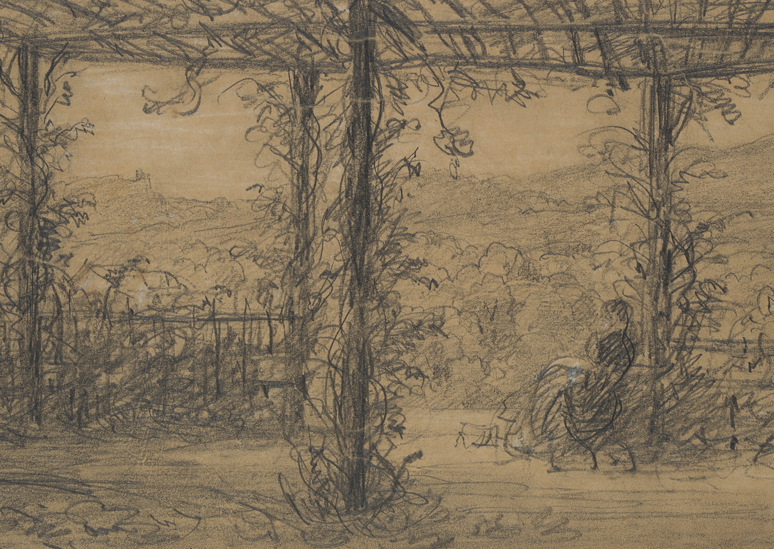 Fritz Wucherer (1873 – 1948 ), View of the Taunus from Osterrieth’s garden and veranda, c. 1920, Charcoal
