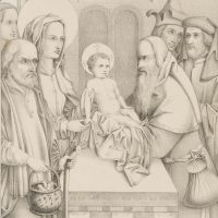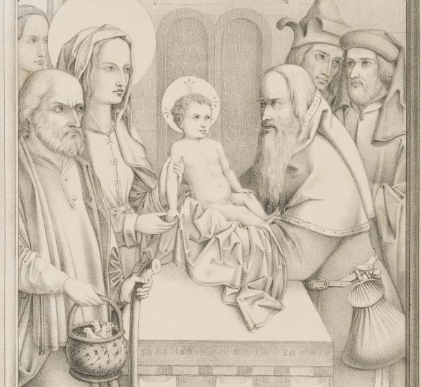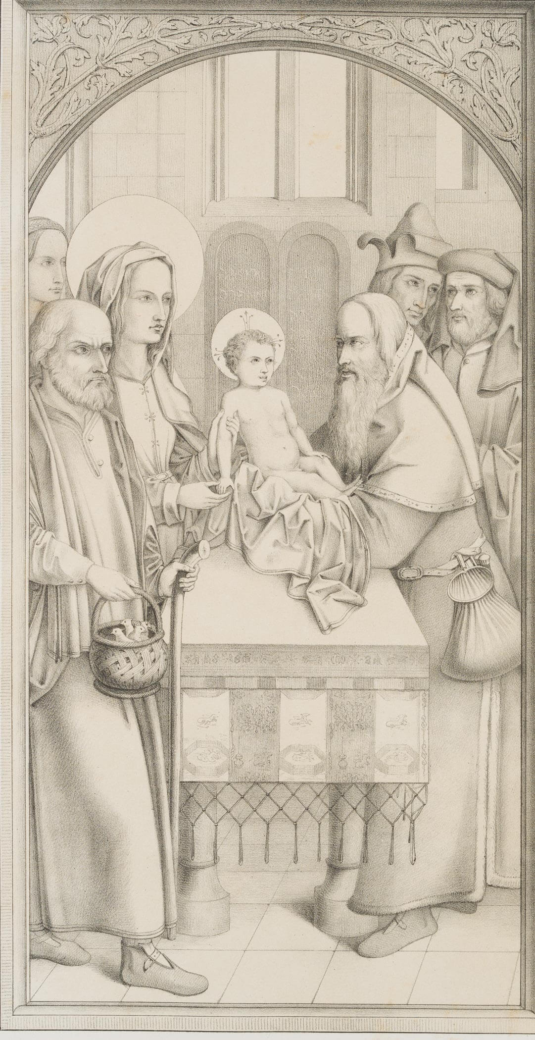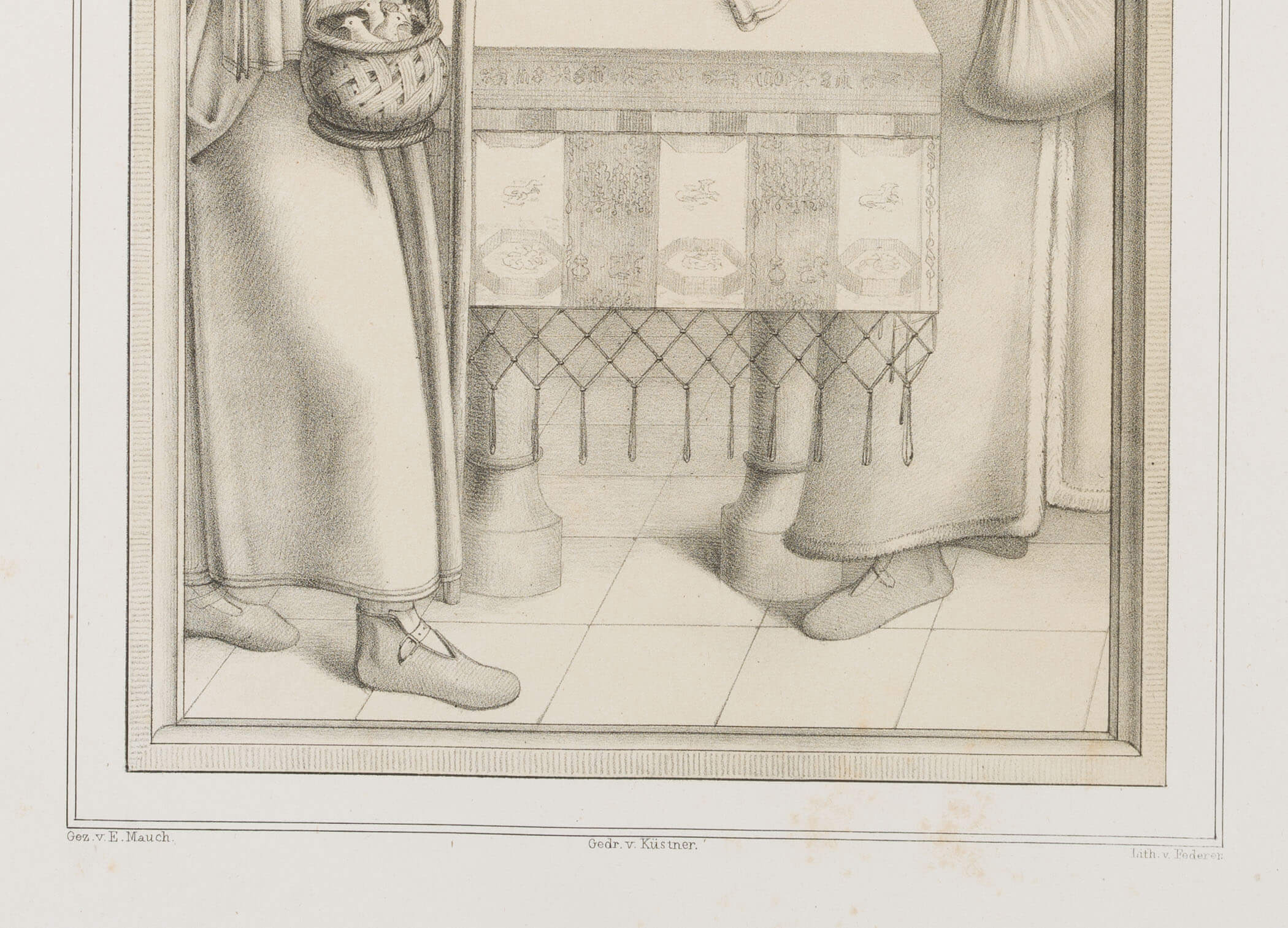 Friedrich Federer (1810 Ludwigsburg – 1853 Stuttgart) nach Eduard Mauch (1800 Geislingen – 1874 Ulm), Darbringung Christi im Tempel, um 1845, Lithographie