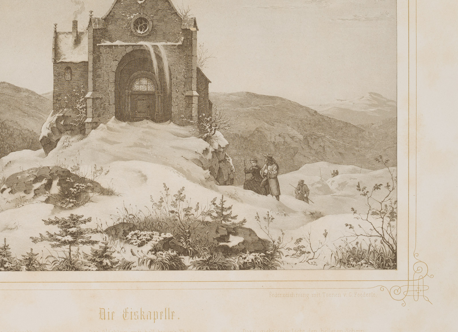 Carl Feederle (1832 Donaueschingen – 1881 Munich) after Ernst Ferdinand Oehme (1797 Dresden – 1855 ibid.), The Ice Chapel, c. 1840, Lithography with pen
