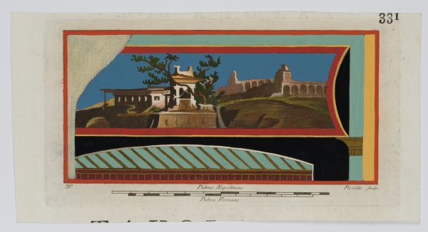 - Inscription: Lower middle signed in the printing plate: “CM | Fiorillo sculp.”. Lower middle inscribed in the printing plate: “Palmo Napolitano | Palmo Romano”. Upper right numbered in the printing plate: “331”.