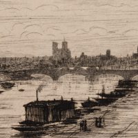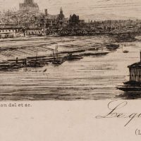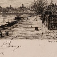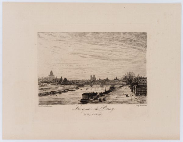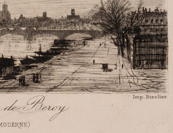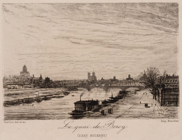 Fooillon (19th century), Le quai de Bercy in Paris, Seine with city skyline, c. 1900, Etching