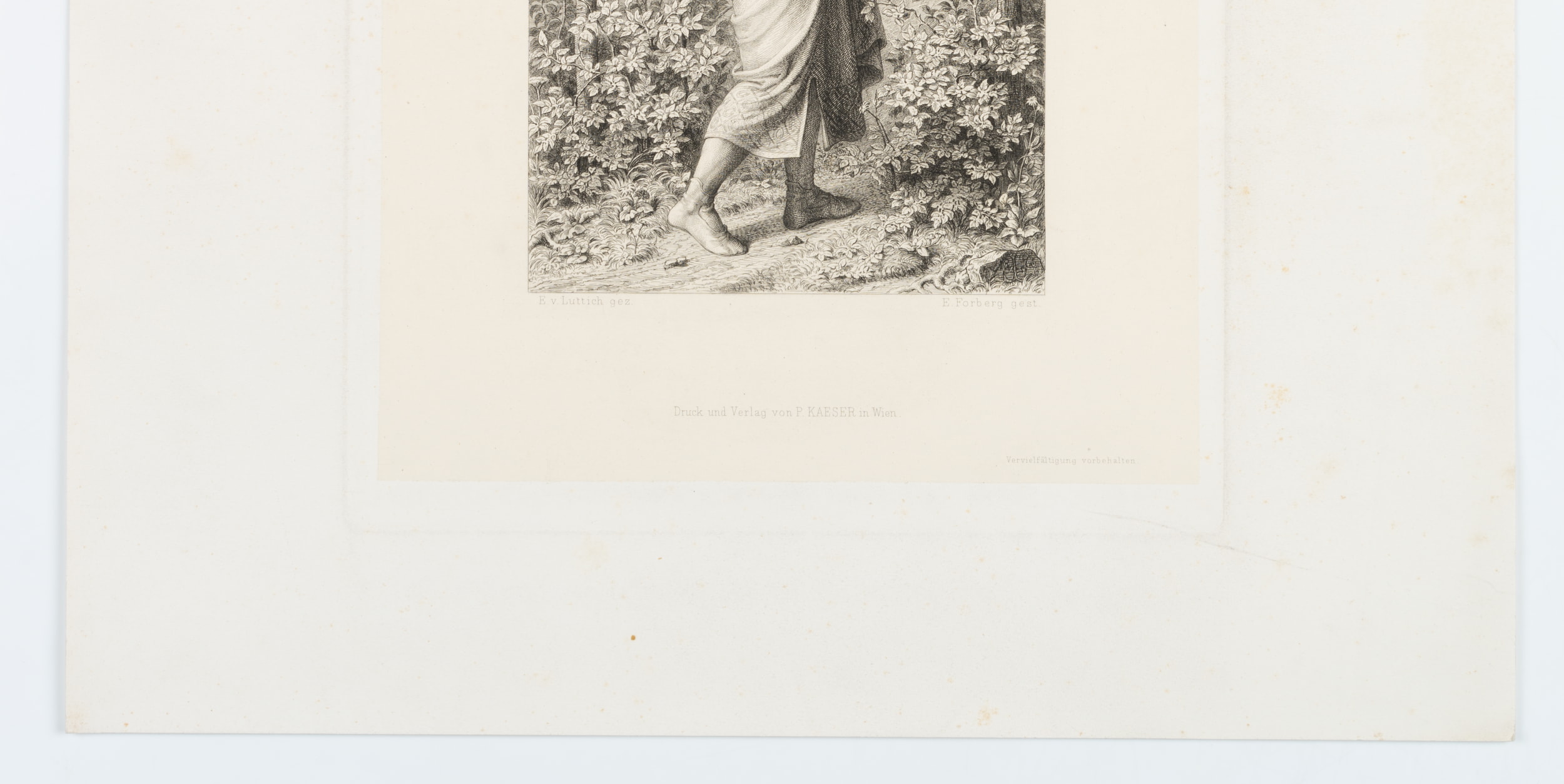 • Bezeichnung: Unten mittig im Druck signiert: “E. v. Lüttich gez. | E. Forberg gest.”. Oben mittig im Druck bezeichnet: “Der Heinrich von Veldeke”.
