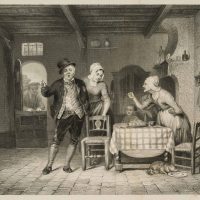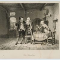 - Beschreibung: “Das Räuschchen”, Lustspiel in vier Akten von Christoph Friedrich Bretzner (1748 – 1807); unter der Darstellung signiert: “De Bruycker / W. French sc.”, mittig darunter betitelt.
