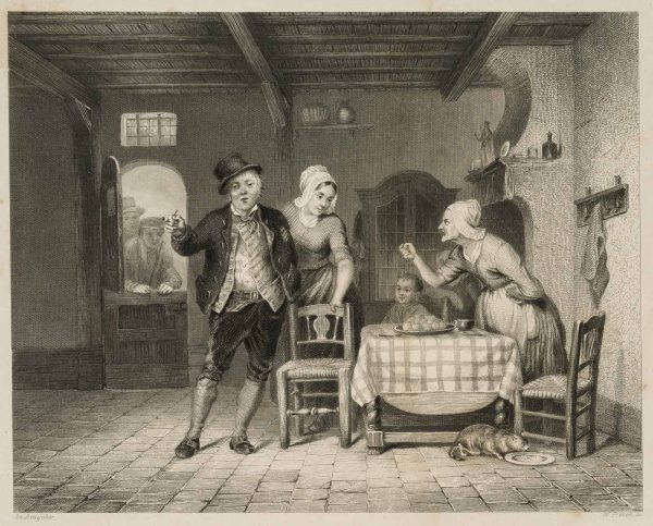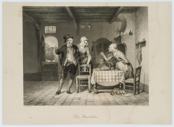 William French (1815 Sussex – 1898 East Grinstead) nach François Antoine de Bruycker (1816 Gent – 1882 Antwerpen), Das Räuschchen, um 1870, Stahlstich