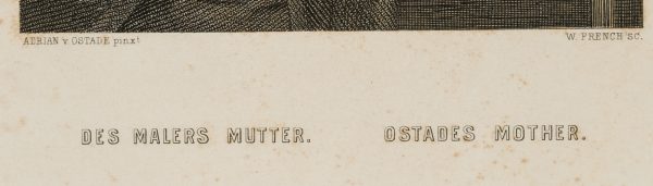 - Bezeichnung: Unterhalb der Darstellung typographisch betitelt und bezeichnet und signiert: “Adrian v. Ostade pinxt. / W. French sc. / Druck und Verlag v. A. H. Payne, Leipzig u. Dresden.”; darunter betitelt in deutsch und englisch; bezeichnet oben links: “Museum in Berlin.”.