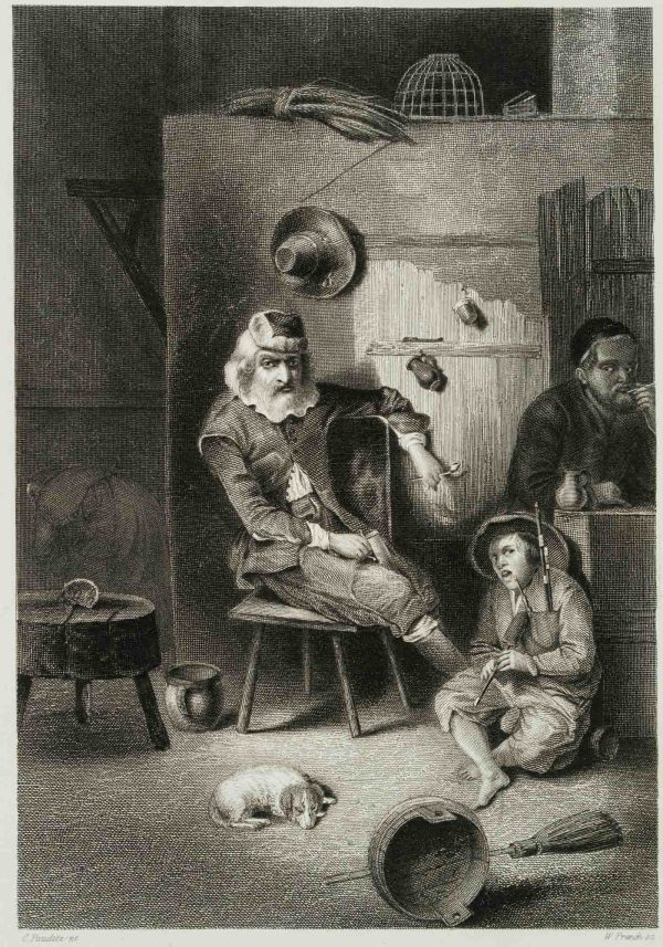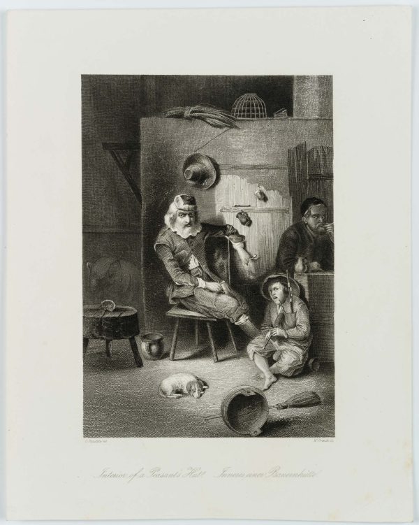 William French (1815 Sussex – 1898 East Grinstead) after Paudiss (18th century), “Interior of a Peasant’s Hut Interior of a Peasant’s Hut, 1821, Etching