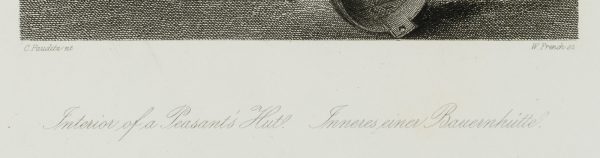 William French (1815 Sussex – 1898 East Grinstead) nach Paudiss (18. Jahrhundert), “Interior of a Peasant’s Hut. Inneres einer Bauernhütte”, 1821, Radierung