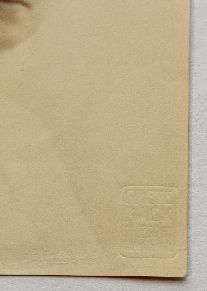- Inscription: In the lower right corner of the image is a blind stamp with the photographer’s name: “Grete Back Dresden Blasewitz”.