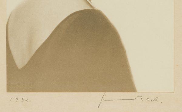 - Inscription: Lower right signed: “Back”. lower left dated: “1932”. Below on the backing sheet is the photographer’s signature in pencil with the date .