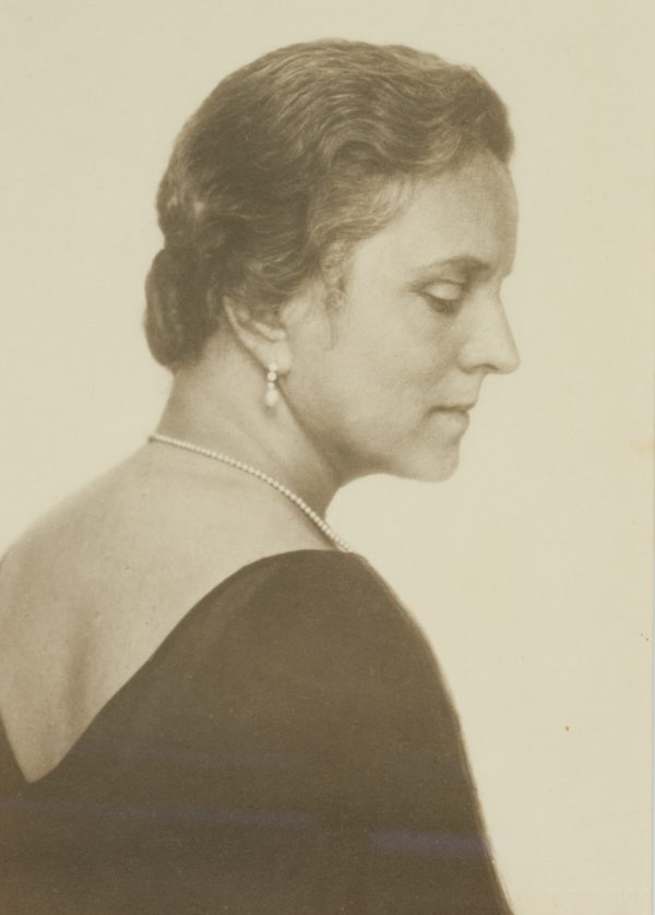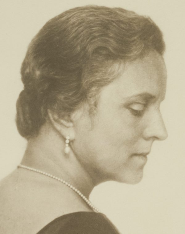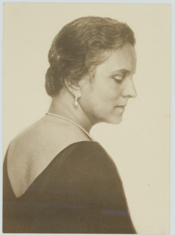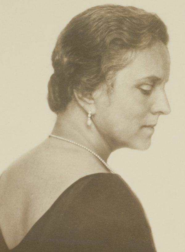 Brust im Profil mit abgewandtem Oberkörper. Die Dargestellte trägt ein dunkles Kleid sowie Perlenschmuck und hat die Augen nachdenklich niedergeschlagen. Minnie NAST zählt zu den großen deutschen Opernsängerinnen des frühen 20. Jahrhunderts. Nach ihrem musikalischen Studium am Badischen Konservatorium in Karlsruhe machte sie ihr gesangliches Debüt 1897 in Aachen. Sie begann eine erfolgreiche Karriere, die sie unter anderem auf die Bühnen in Kanada, den Vereinigten Staaten von Amerika, Russland, den Niederlanden und Großbritannien führte. Bis 1919 sang die Sopranistin regelmäßig in der Semperoper zu Dresden. Danach lehrte sie bis 1945 Gesang in Dresden. Minnie NAST ist für ihre munteren und leichten Verkörperungen von Soubrettenrollen, vor allem in Mozart-Opern, bekannt. Eine herausragende Leistung erwies sie am 26. Januar 1911 als sie bei der Uraufführung von Richard Strauss’ Der Rosenkavalier die Rolle der Sophie sang. Durch erhaltene Tonaufnahmen kann man noch heute ihre klare und bezaubernde Stimme erleben. Die Fotografie stammt aus dem Studio der berühmten Dresdner Fotografin Grete BACK (eigtl. Margarete Bertha Back), die nach einer Lehre bei Hugo ERFURTH in Dresden auch im europäischen Ausland tätig war und schließlich 1909 in Dresden ein eigenes Studio eröffnete. Der Schwerpunkt ihrer fotografischen Arbeit liegt in der Porträt- und Theaterfotografie. - Schlagworte: Porträt, Deutschland, Art Nouveau, 1900-1924