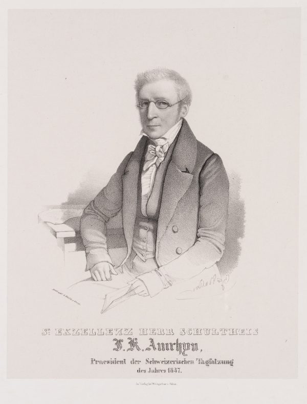Swiss Schultheiss. President of the Federal Diet. Josef Karl Amrhyn was regarded as a moderately liberal, cautious, cool, influential statesman with a tendency to mistrust, who was himself unfit for service but promoted the military considerably. He was also the first to initiate the publication of the Federal Departures (Protokolle), which did not have the force of law, but were used by the deputies to communicate the content of the deliberations to their governments. As State Councillor, he dealt with, among other things, extensive proposals for improvements to the Criminal Code, some of which were given the force of law.