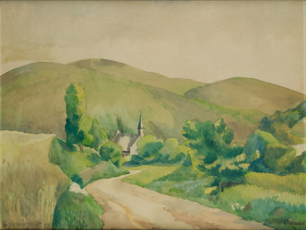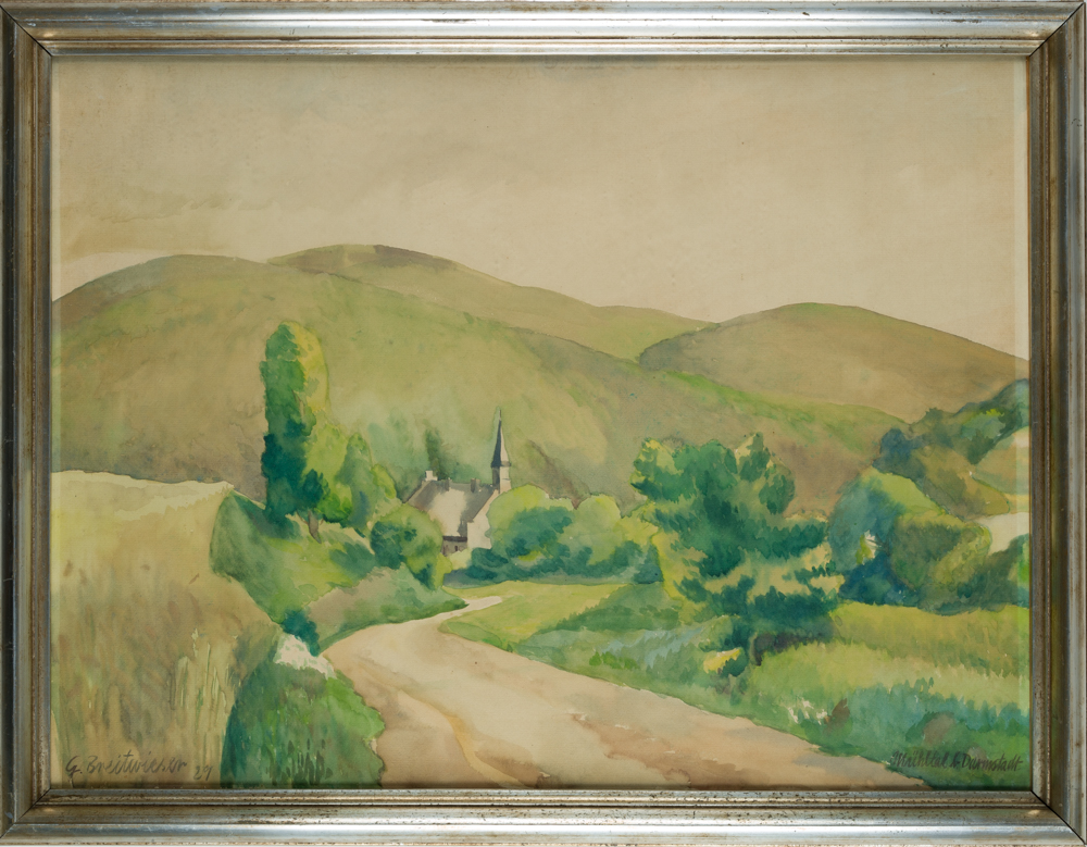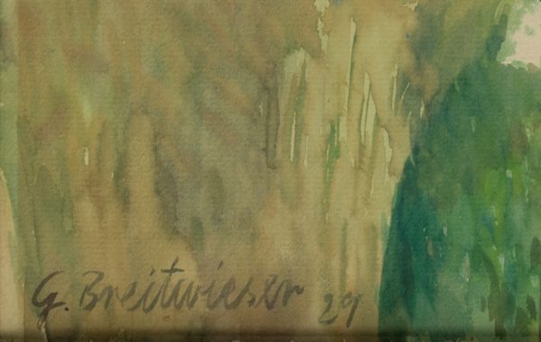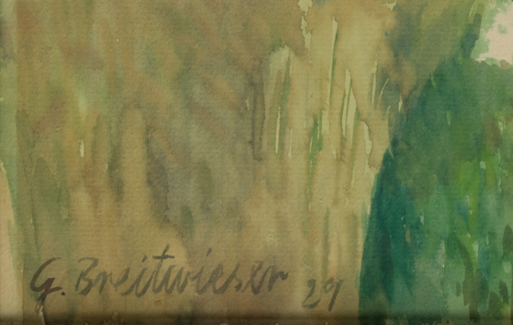 • Inscription: Signed and dated by the artist at lower left: “G.Breitwieser 29”, inscribed on the right: “Mühltal b. Darmstadt”. Inscribed in pen on the reverse: “Sophien mit viel Dank zurück”.