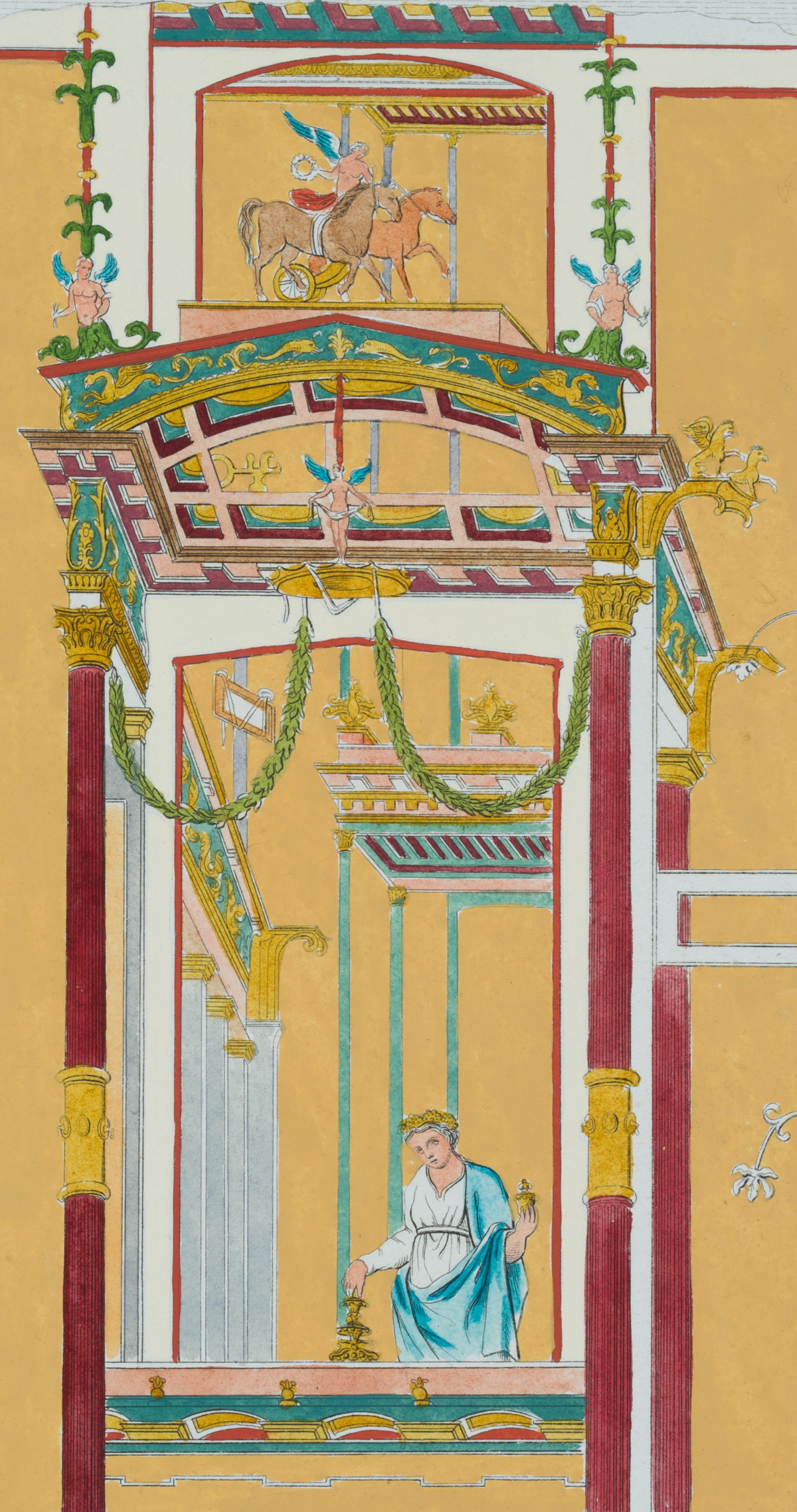 - Keywords: Pompeii, Herculaneum, fresco, antiquity, frieze, ornament, Roman mural, ancient culture, classicism, Pompeian style, putto, boy, angel, 18th century, Roman, Mythology, Italy,